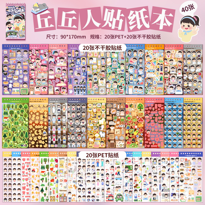 Tirado Qiuqiu 스티커 핸드북 스티커 귀여운 만화 캐릭터 핸드북 소녀와 어린이 장식 작은 패턴스토어 가기