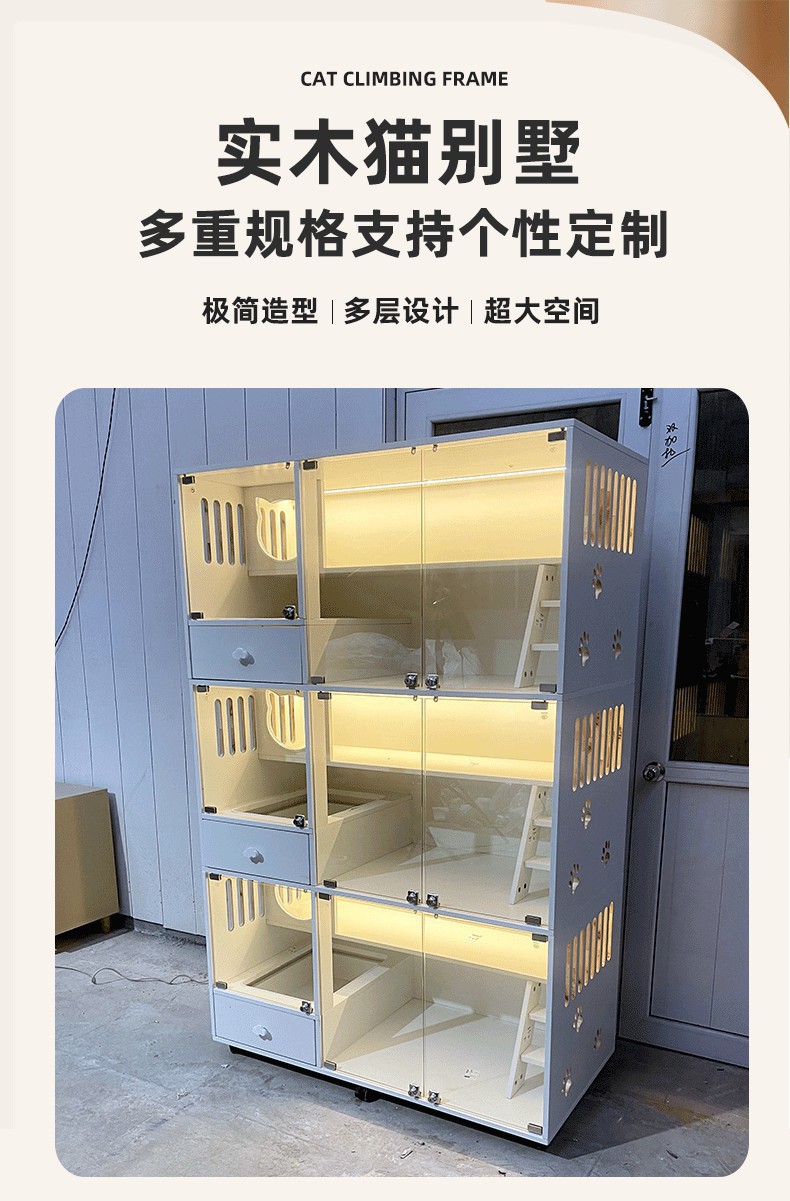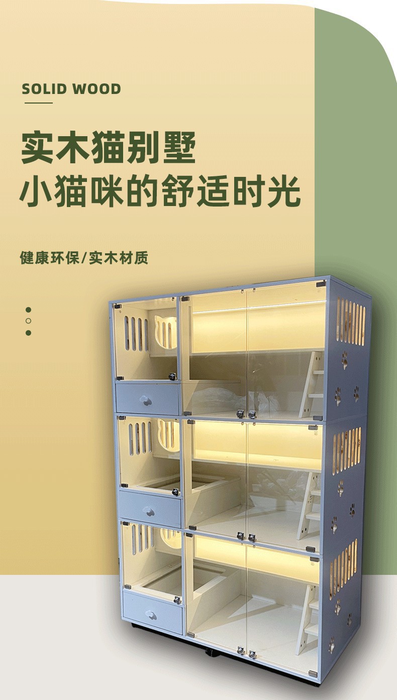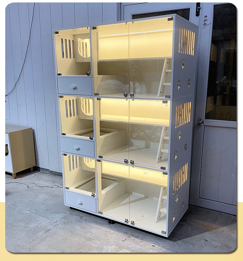 고양이 빌라 단단한 나무 고양이 케이지 애완 동물 가게 유리 고양이 번식 캐비닛 디스플레이 캐비닛 보호 캐비닛 고양이 집 고양이 빌라 제조 업체스토어 가기