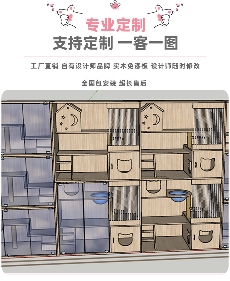 고양이 빌라 단단한 나무 고양이 케이지 애완 동물 가게 유리 고양이 번식 캐비닛 디스플레이 캐비닛 보호 캐비닛 고양이 집 고양이 빌라 제조 업체
