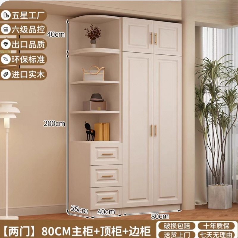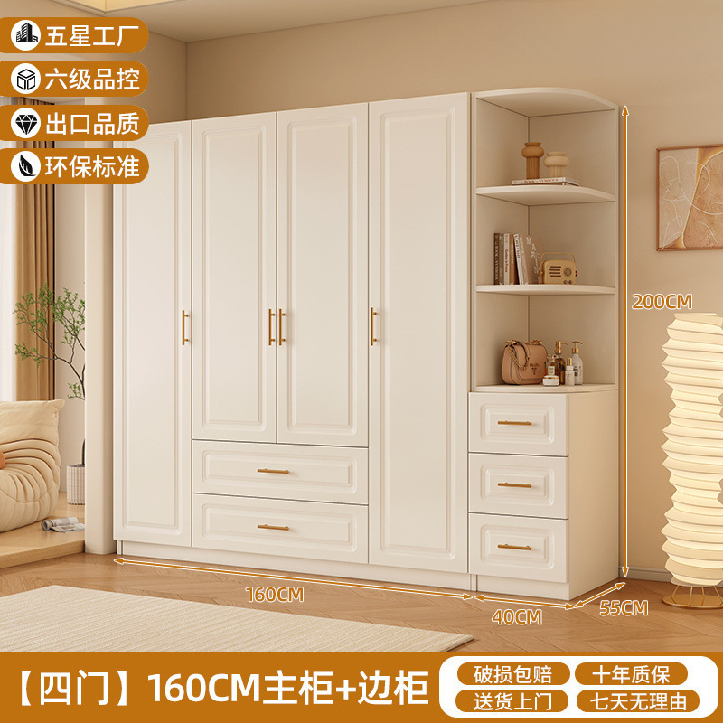 단단한 나무 옷장, 마스터 침실, 4 도어, 내구성, 거실, 대용량, 임대 옷장, 새로운 스타일, 두껍고 강화된 크림 스타일스토어 가기