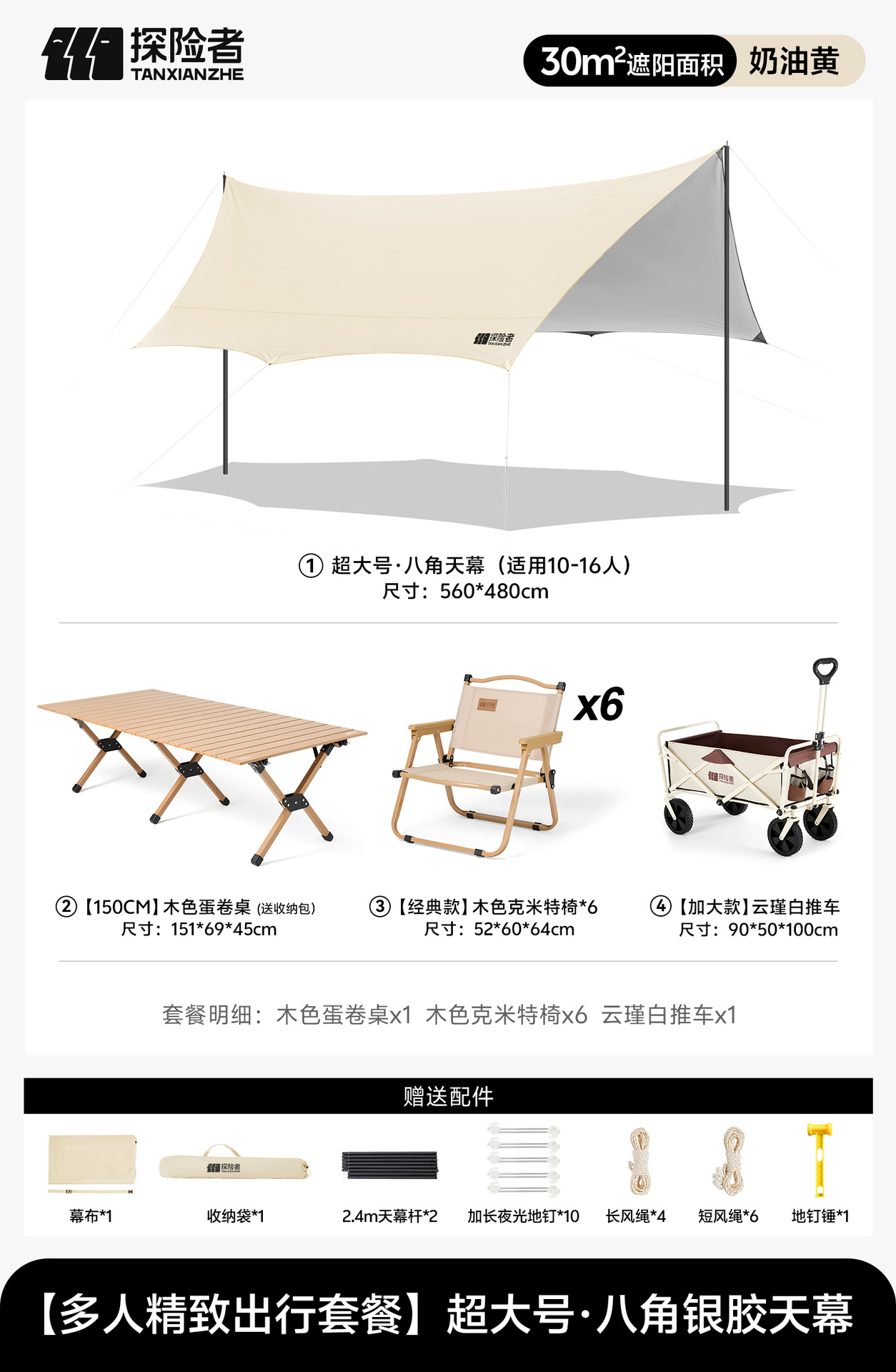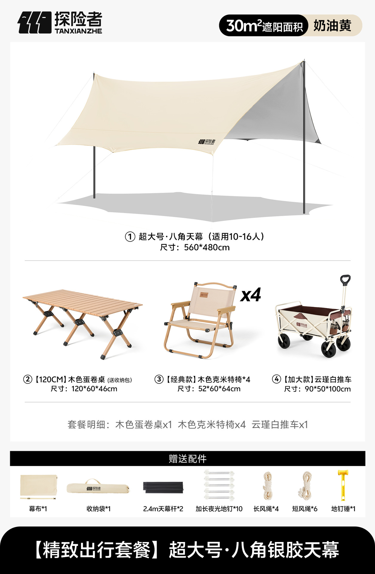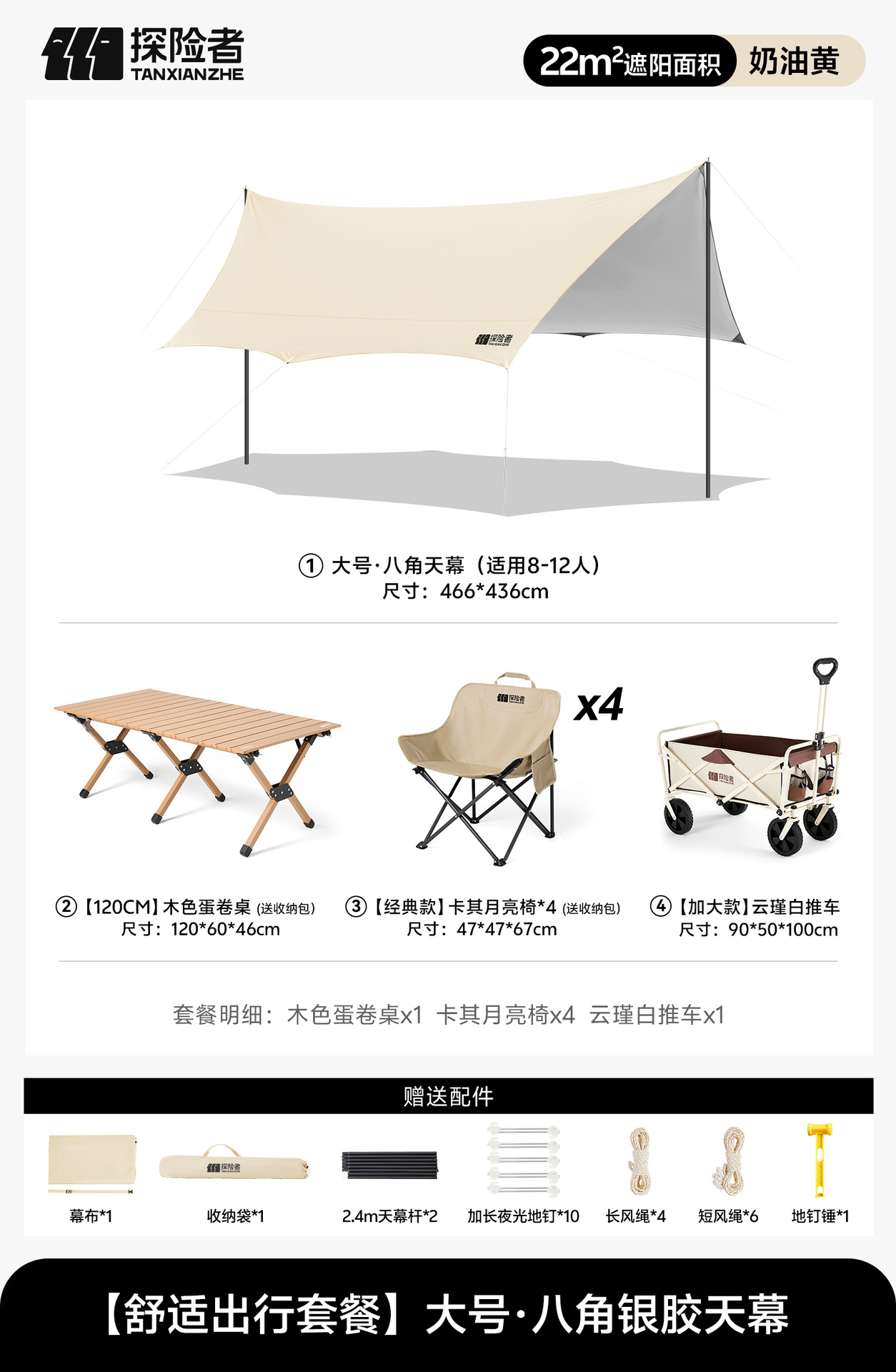 • (22 ㎡ ) 팔각형 캐노피 + 120cm 에그롤 테이블 + 달의자*4 + 카트