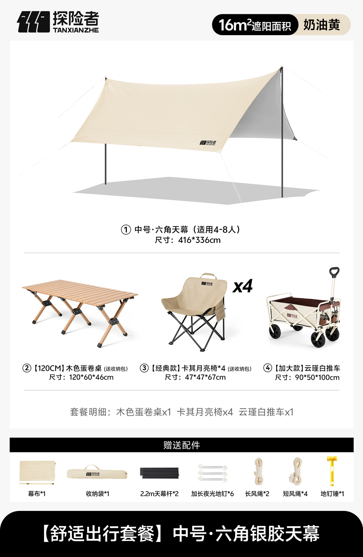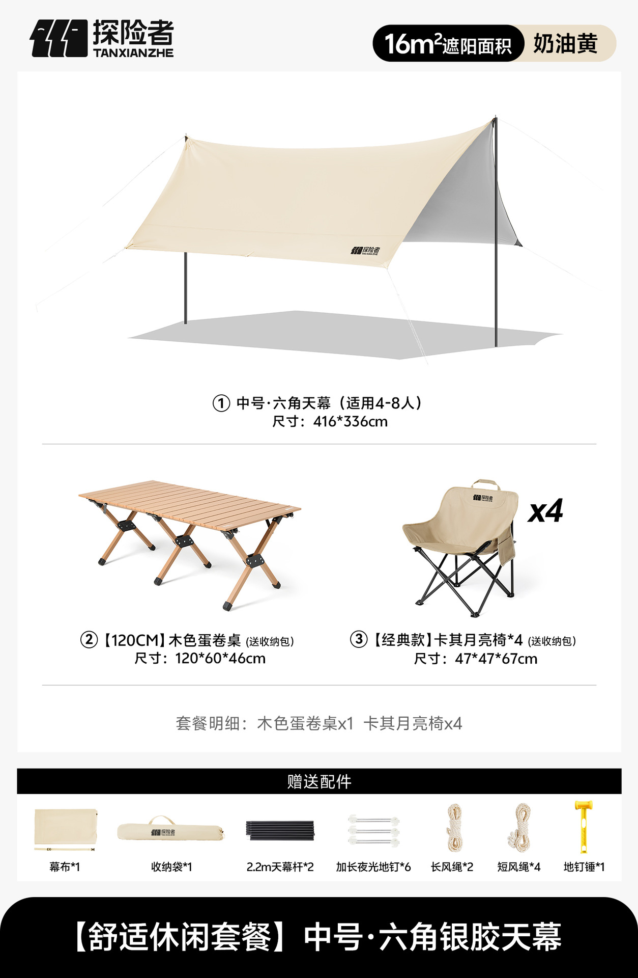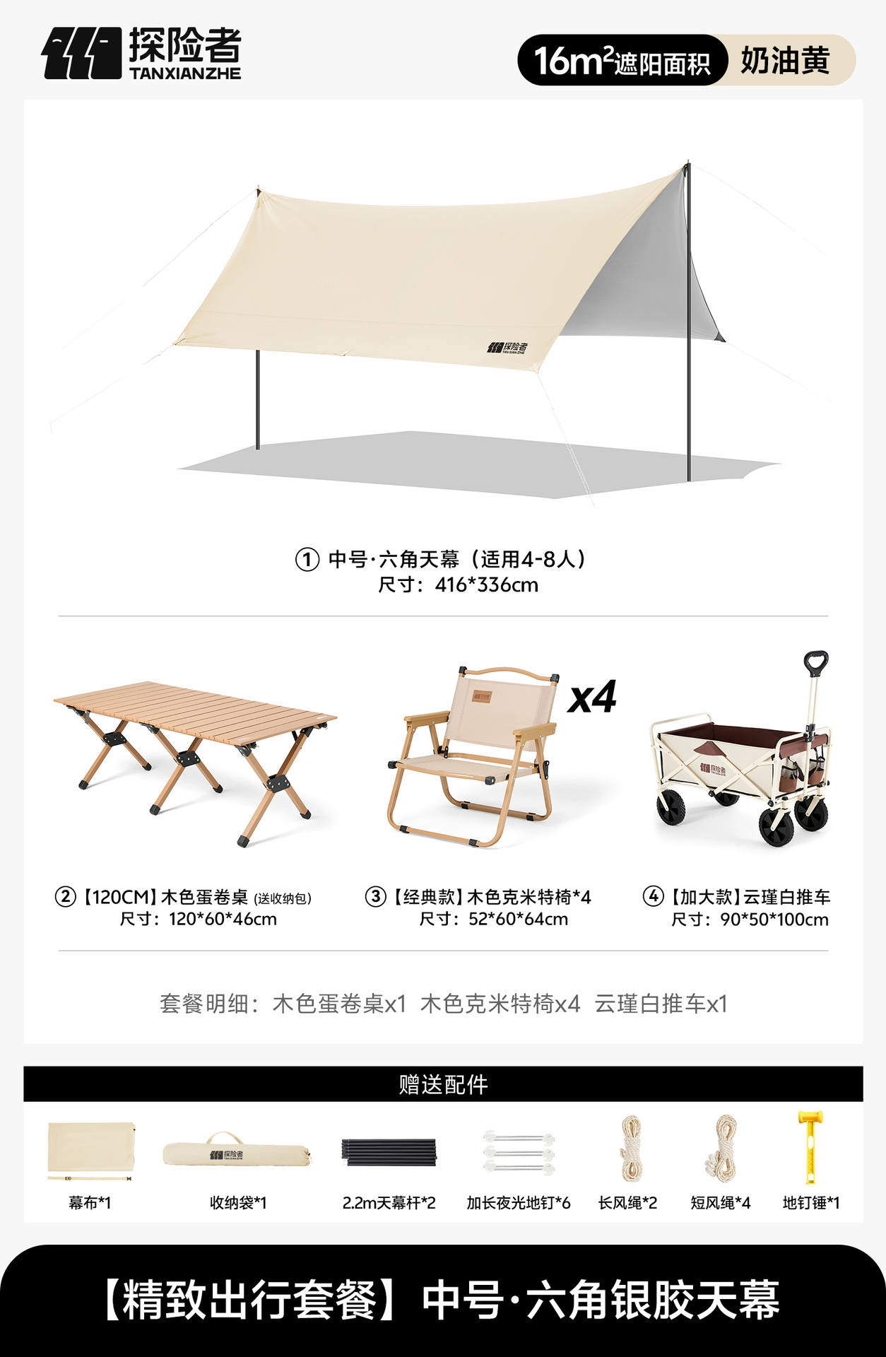 • (16 ㎡ ) 육각형 캐노피 + 120cm 에그롤 테이블 + 달의자*4 + 카트