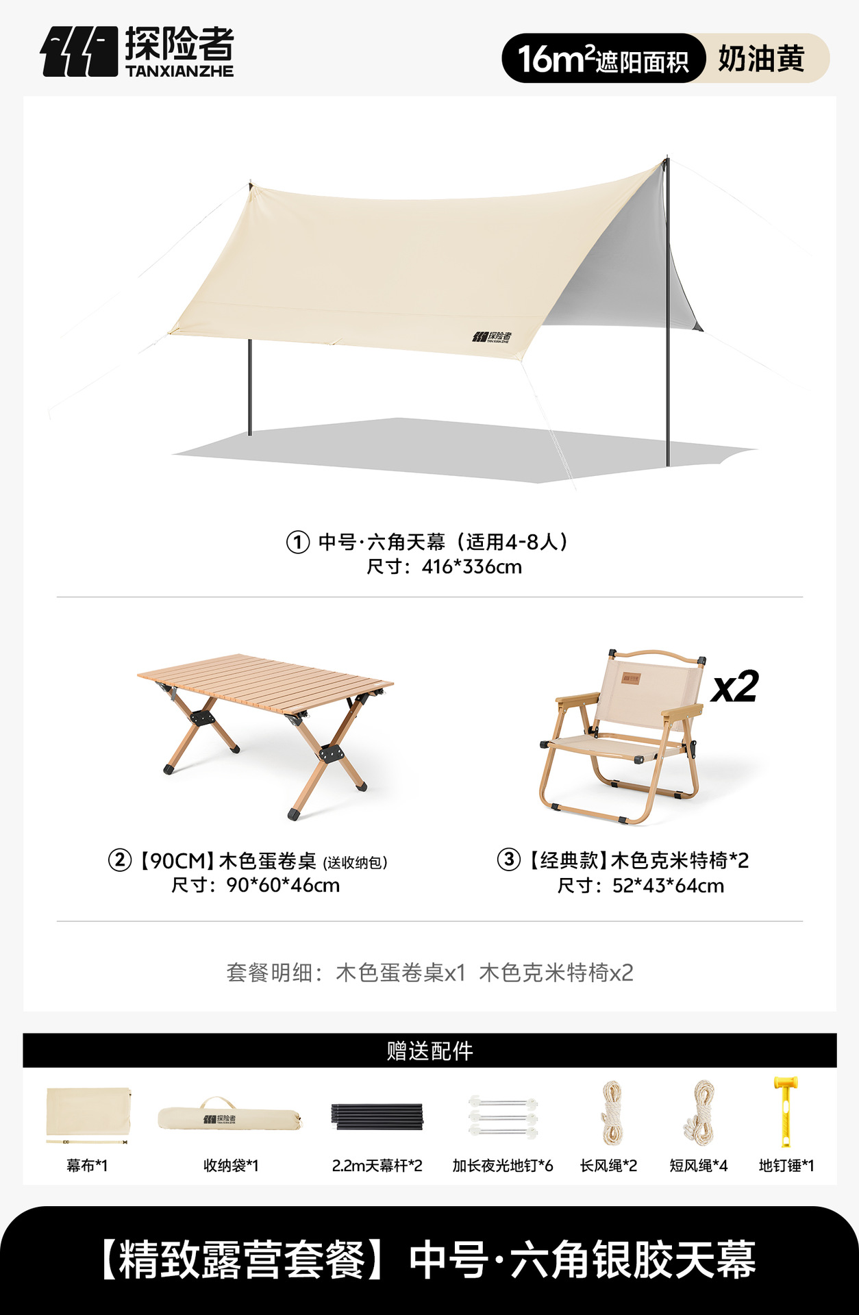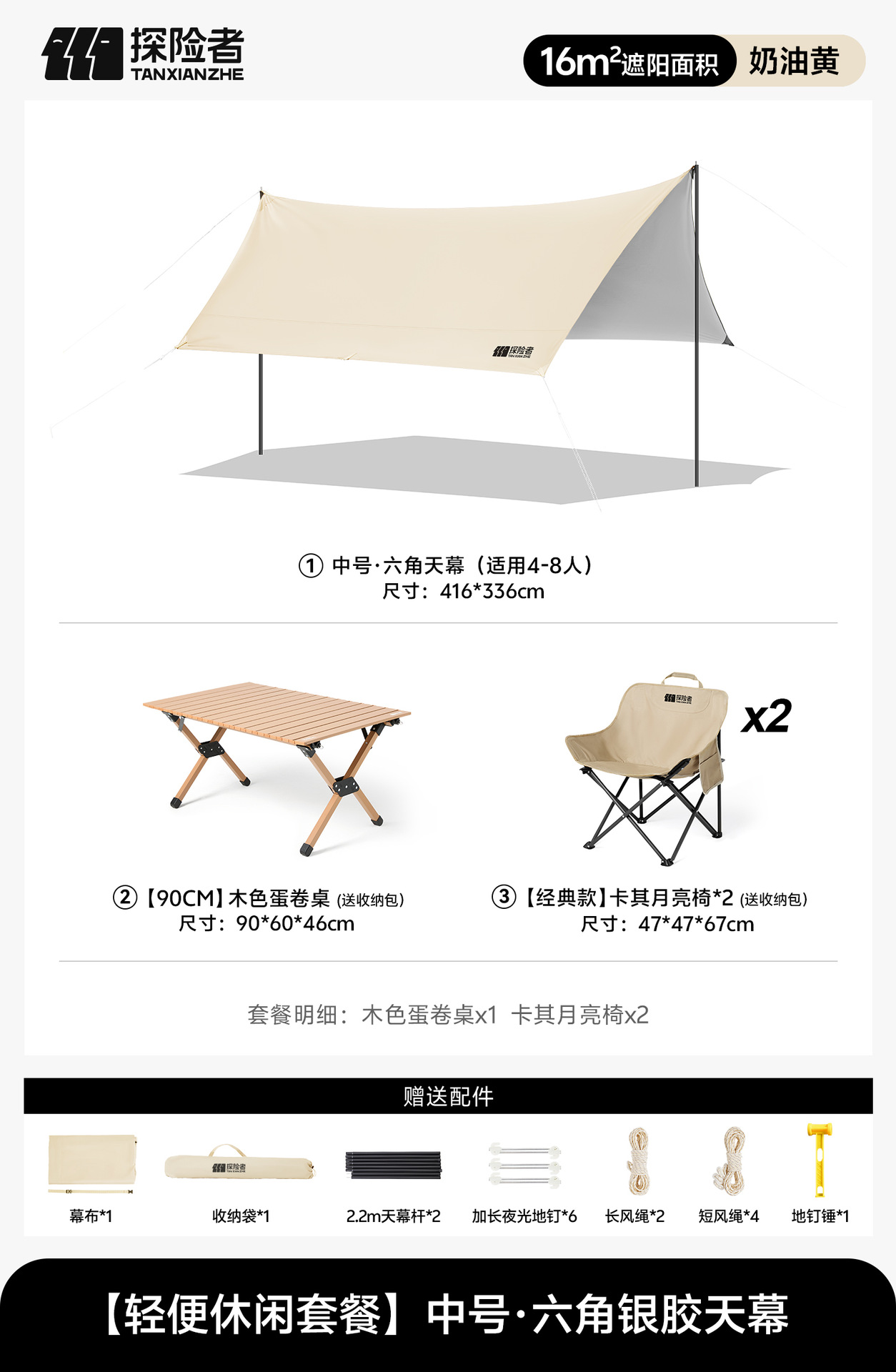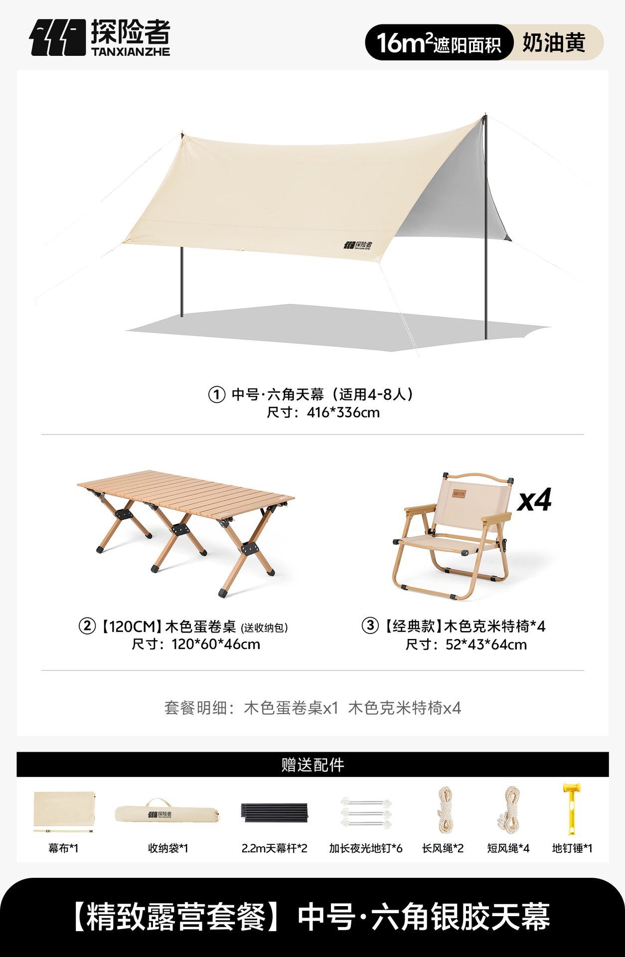 • (16 ㎡ ) 육각형 캐노피 + 120cm 에그롤 테이블 + 달의자*4 + 카트