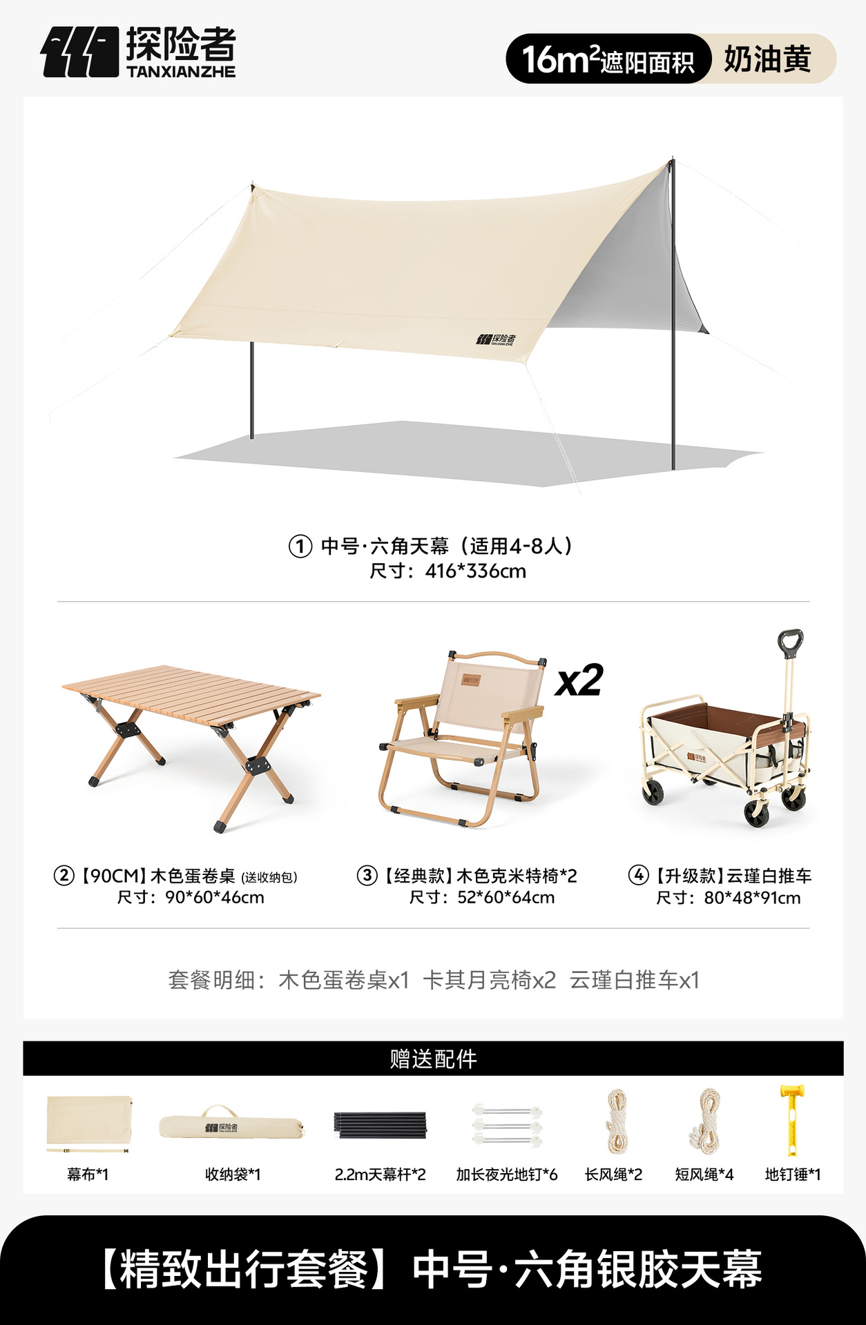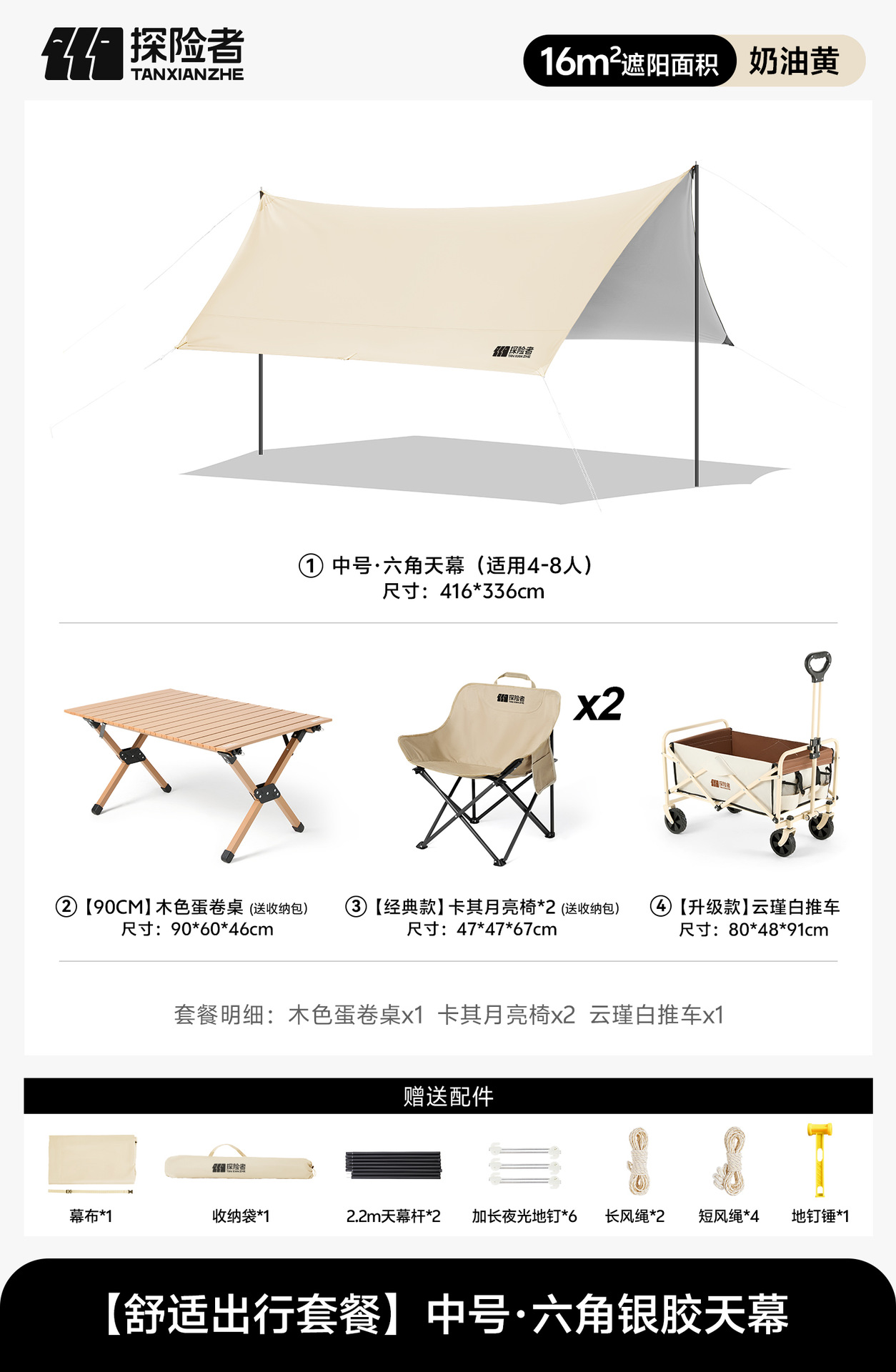 • (16 ㎡ ) 육각형 캐노피 + 90cm 에그롤 테이블 + 달 의자*2 + 카트