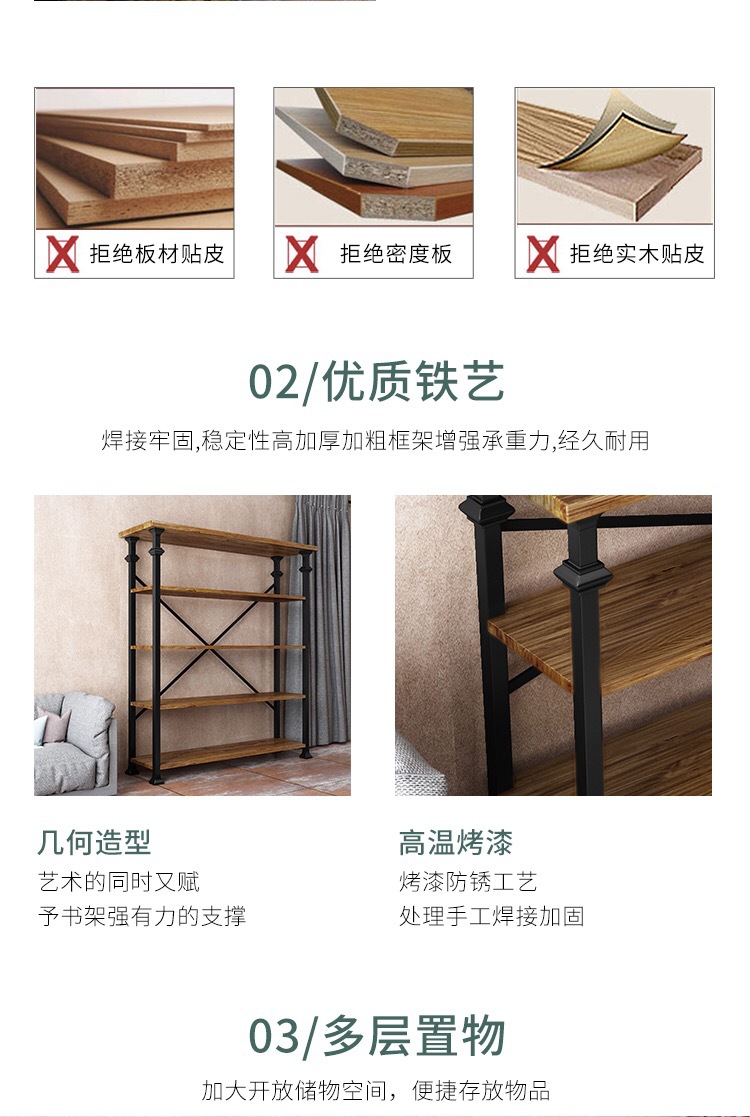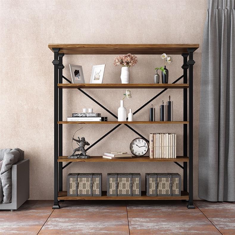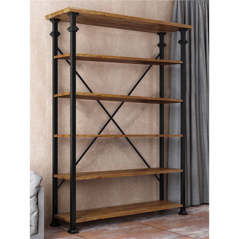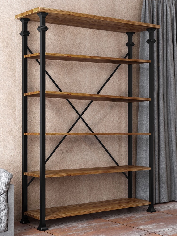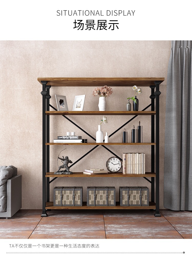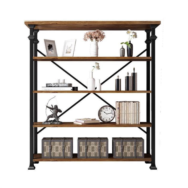 복고풍 단철 단단한 나무 선반 산업 스타일 스토리지 책장 홈 플로어 스탠딩 책장 다층 디스플레이 스탠드 디스플레이 스탠드