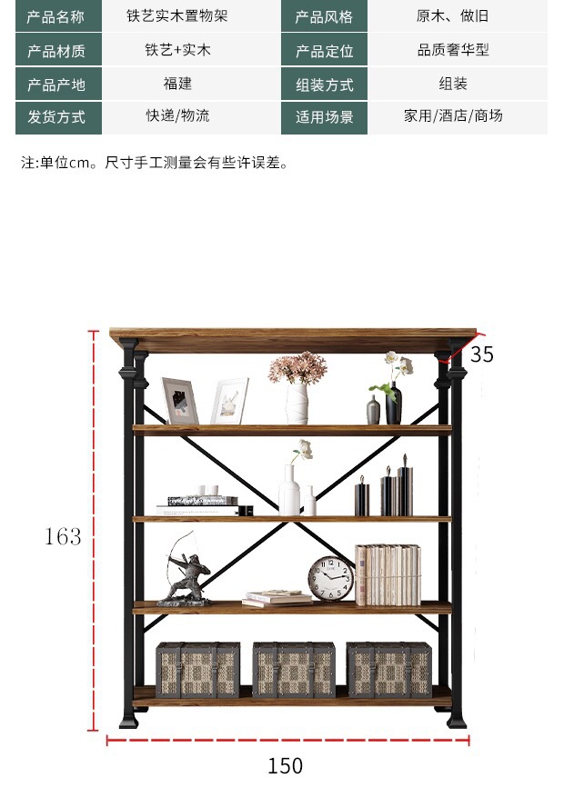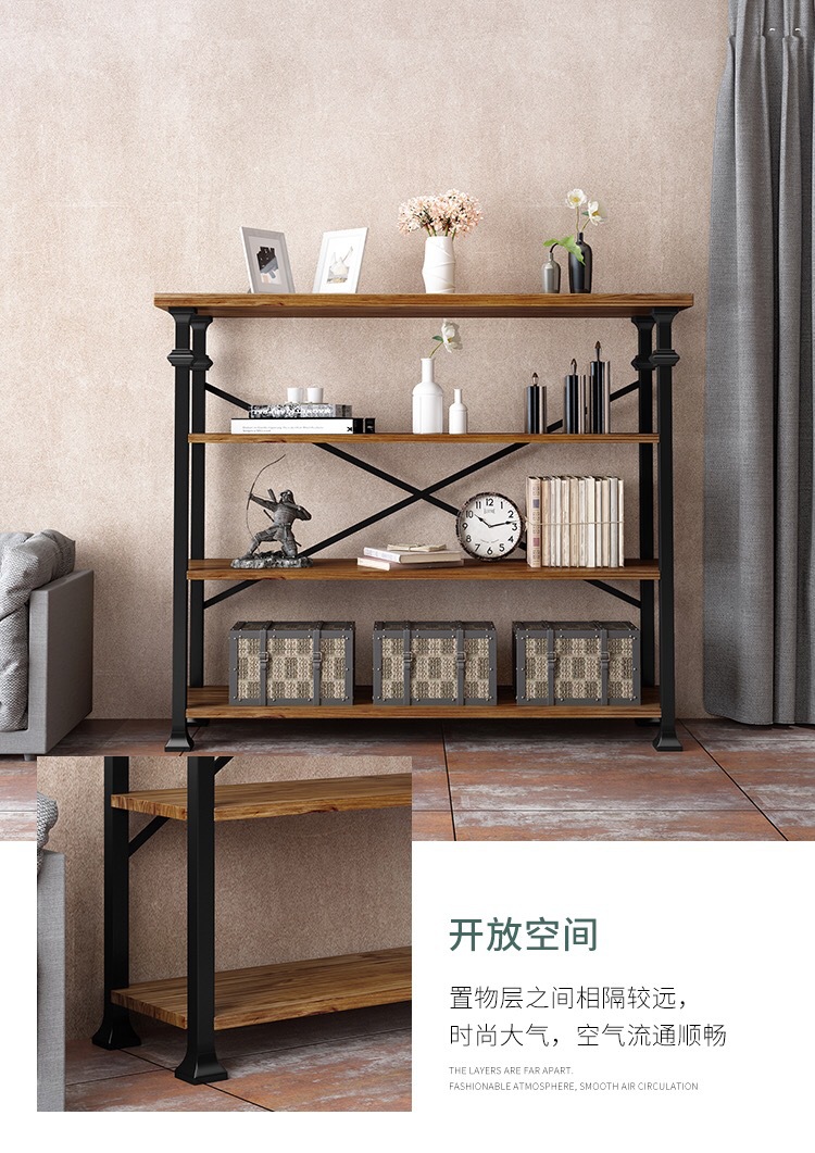 복고풍 단철 단단한 나무 선반 산업 스타일 스토리지 책장 홈 플로어 스탠딩 책장 다층 디스플레이 스탠드 디스플레이 스탠드스토어 가기
