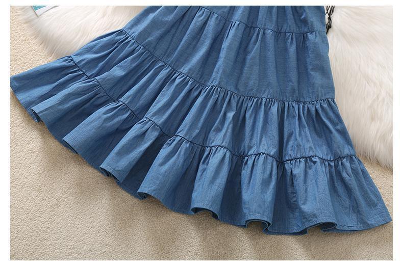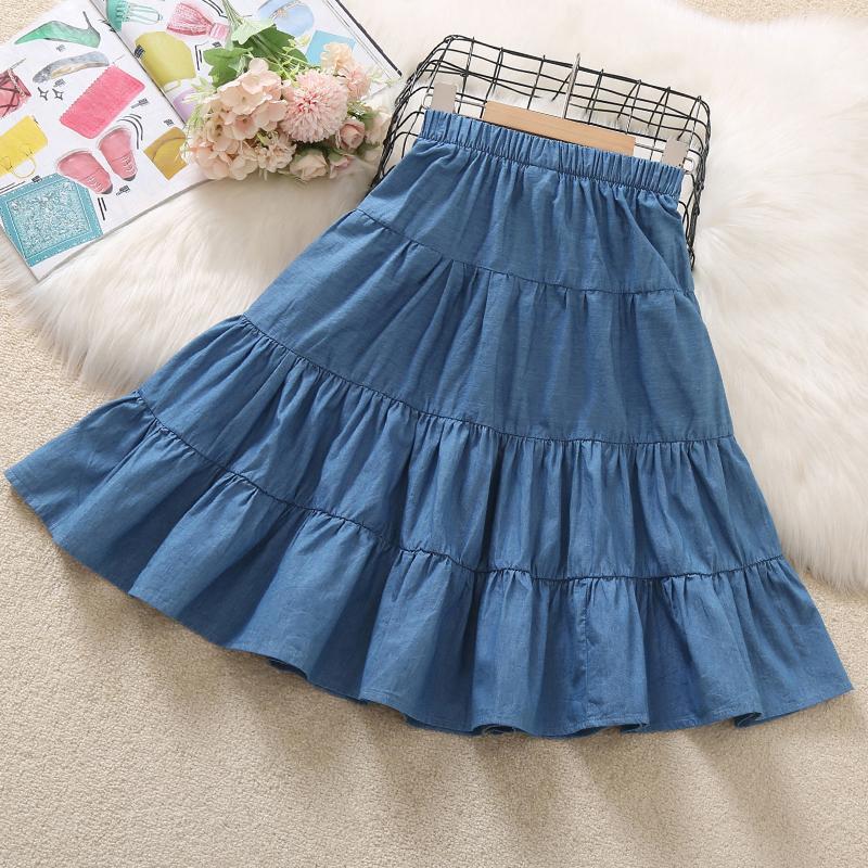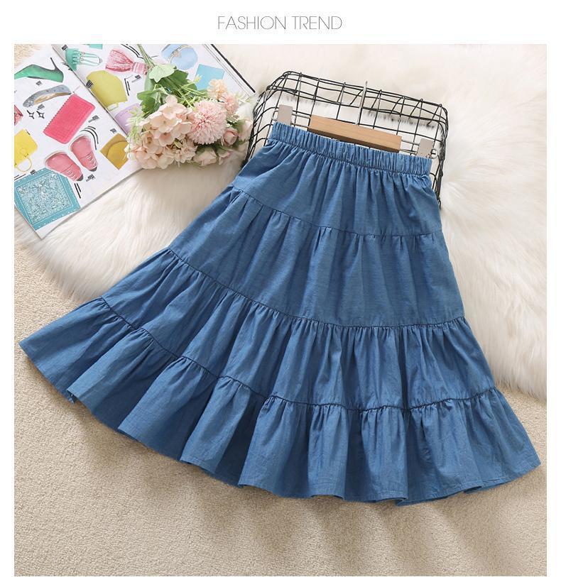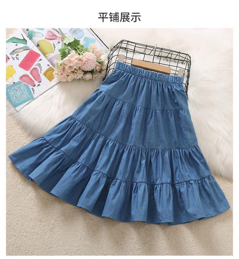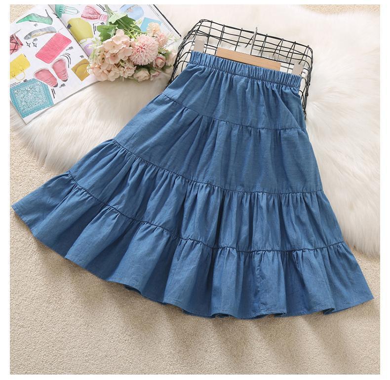 여아 패션 데님 스커트 여름 어린이 A 라인 스커트 얇은 케이크 스커트 어린 소녀 주름 스커트 유행스토어 가기