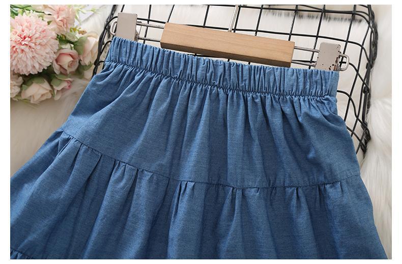 여아 패션 데님 스커트 여름 어린이 A 라인 스커트 얇은 케이크 스커트 어린 소녀 주름 스커트 유행