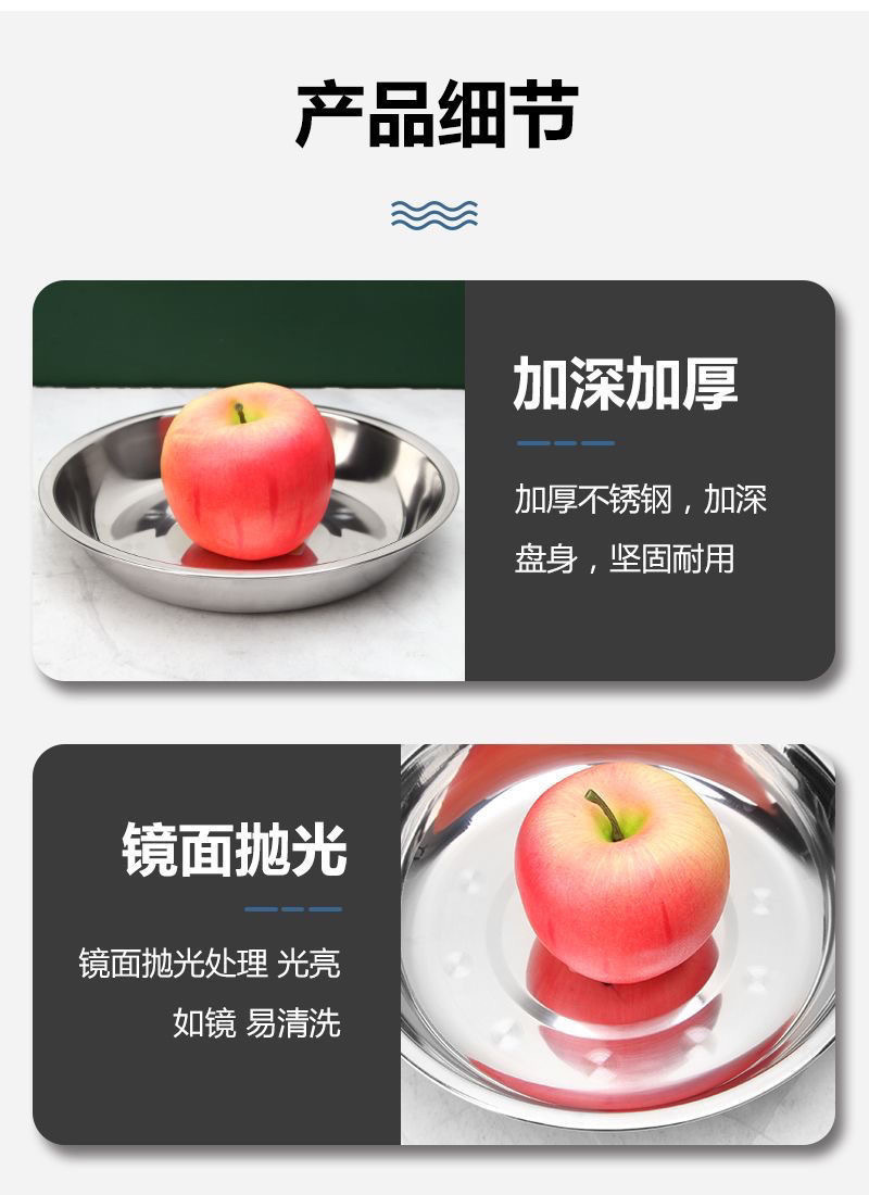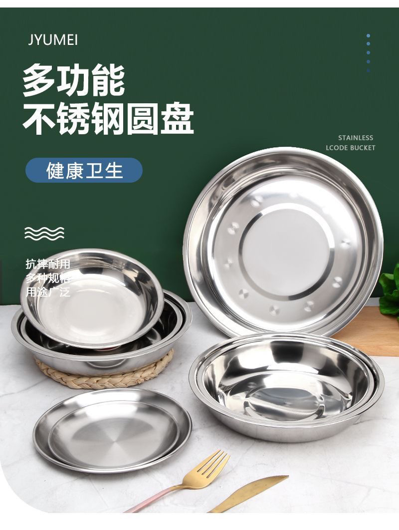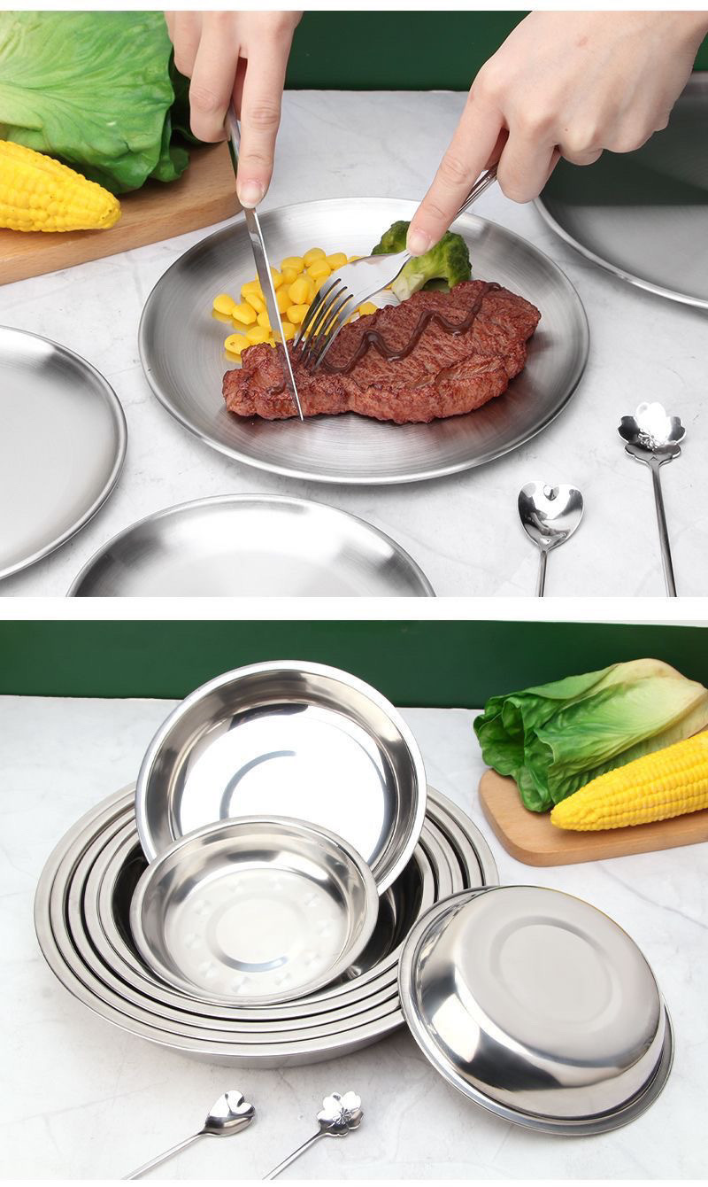 자석 원형 접시가 있는 스테인레스 스틸 접시, 가정용 얕은 원형 평판, 구내식당 식기 접시, 레스토랑 정리