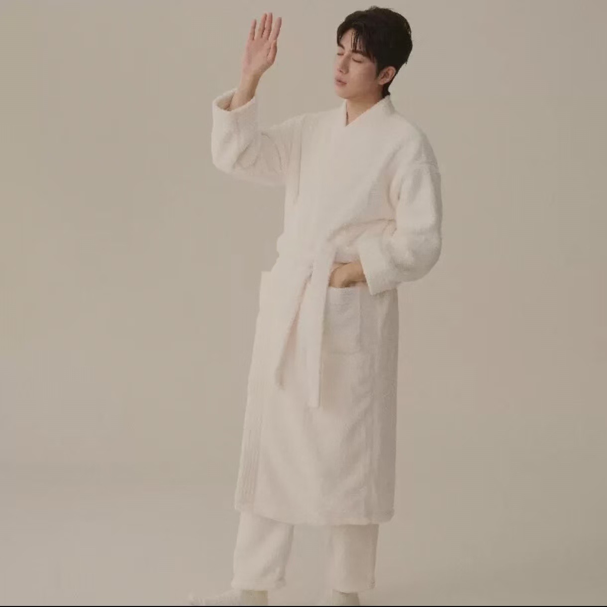 가을 겨울 신상품 쌀 벨벳 두꺼운 산호 벨벳 남성과 여성 잠옷 확장 목욕 가운 커플 잠옷스토어 가기