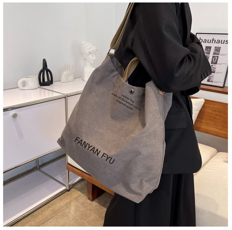 새로운 두꺼운 워시 캔버스 가방 도매 간단한 대용량 쇼핑 및 외출 핸드백 출석 크로스 바디 숄더 백