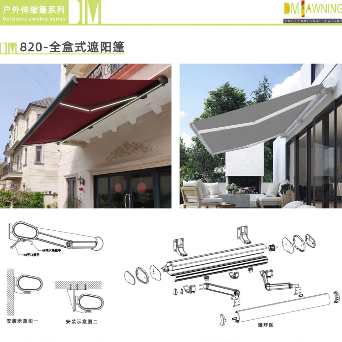 전기 원격 제어 차양, 접이식 텔레스코픽 낙서 빌라 발코니 안뜰 전체 상자 차양