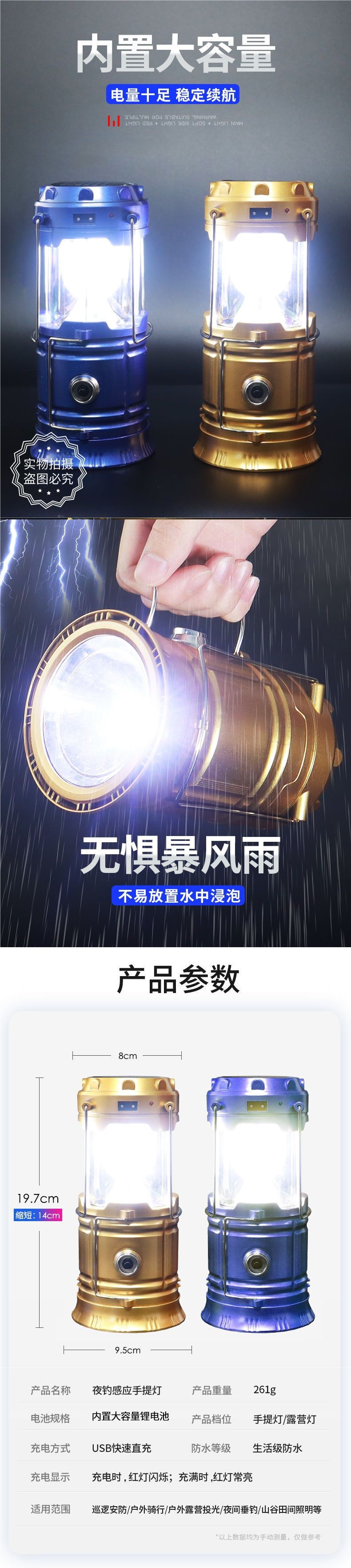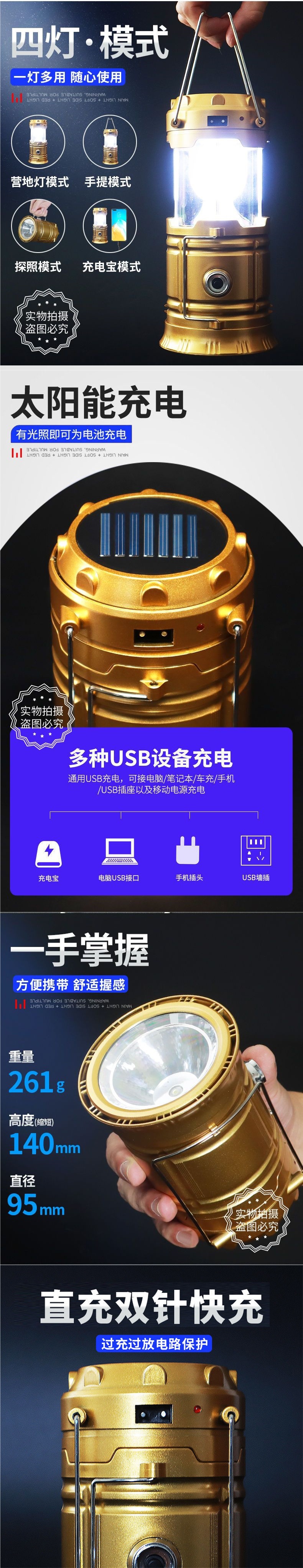 • 임페리얼 골드 [4-in-1 다기능 + 태양광] 하이빔 및 로우빔 - 고구성 [5W300 고휘도 모델] 20평방미터 + 태양광