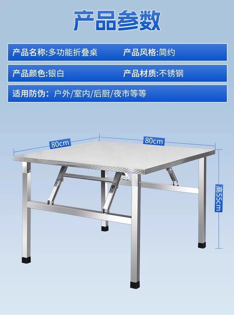 스테인레스 스틸 접이식 테이블 휴대용 바베큐 테이블 야외 스톨 상업용 야시장 스톨 사각 테이블 사각형 식탁
