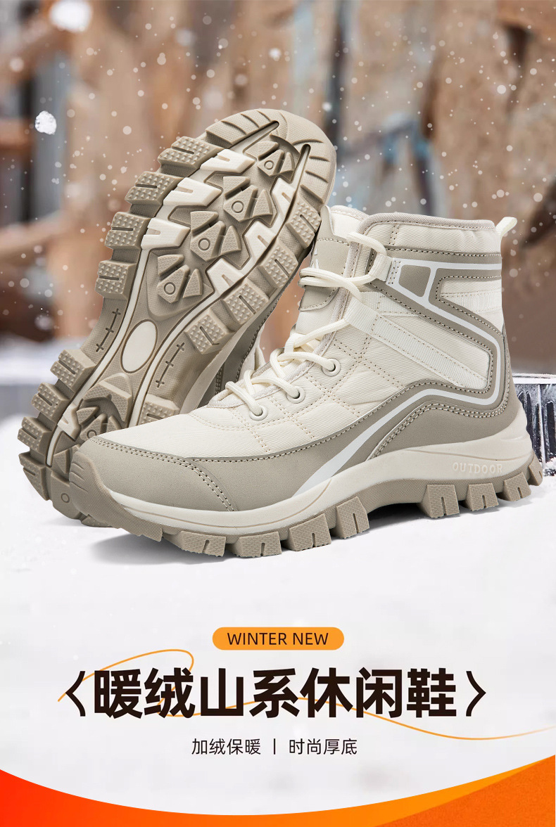 국경 간 대형 면화, 야외 신발, 커플 신발, 하이탑 하이킹 신발, 따뜻하고 편안한 남성 및 여성 벨벳 두꺼운 밑창 캐주얼 신발