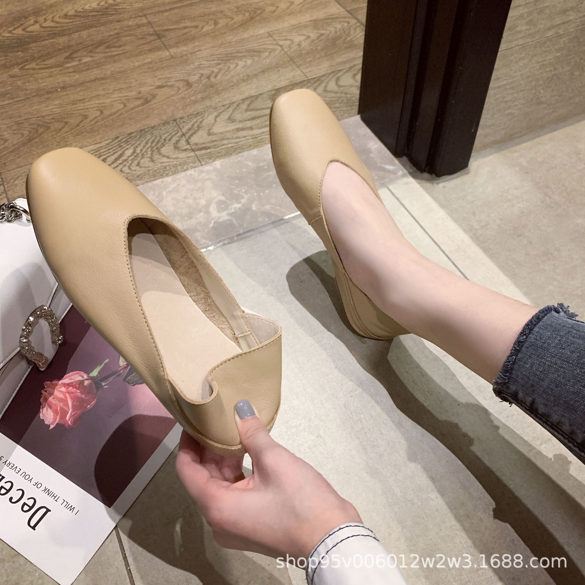 여성을위한 정품 가죽 비니 신발 2025 새로운 가을 할머니 편안한 메리 제인 부드러운 가죽 부드러운 바닥 플랫 작은 가죽 신발스토어 가기