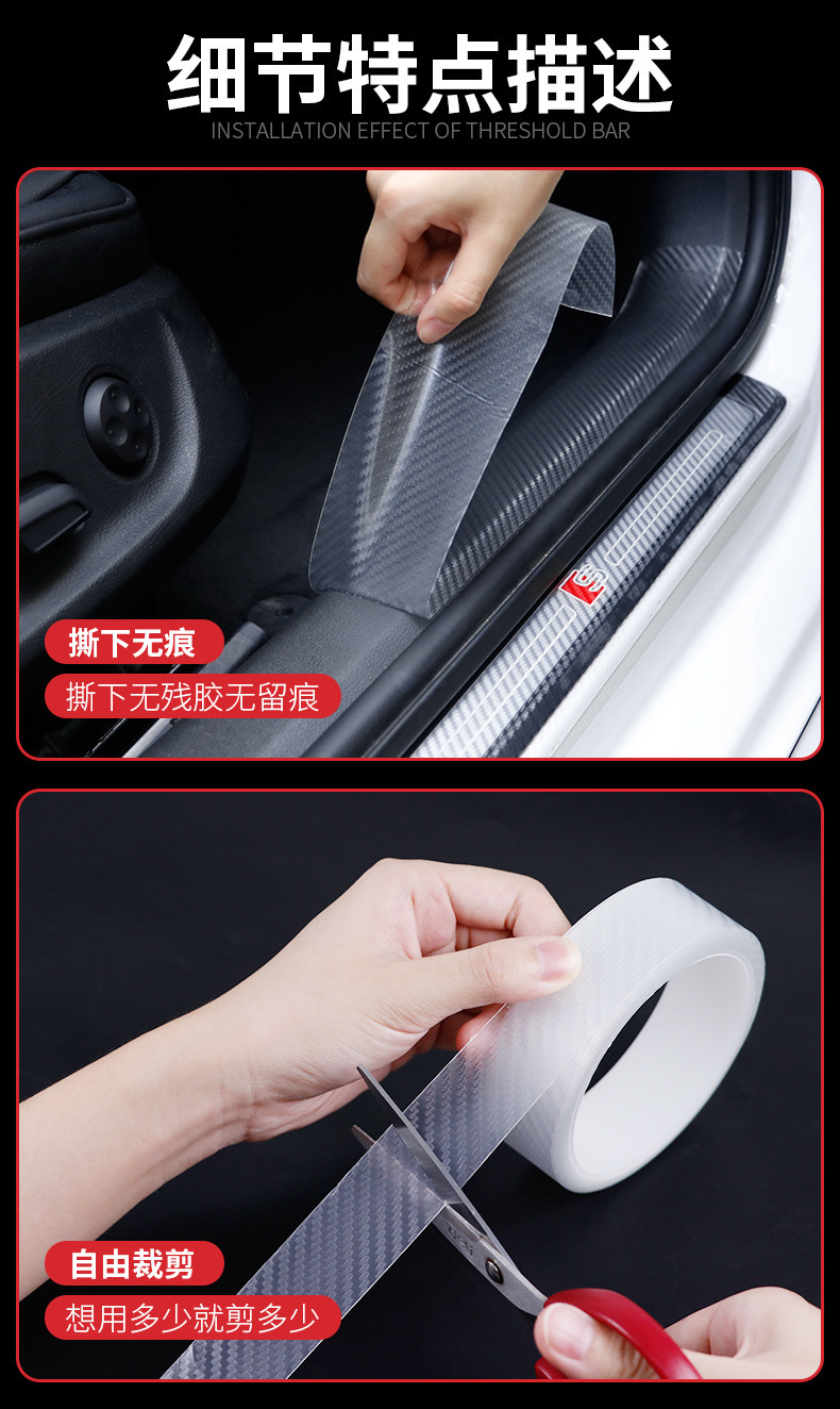 K3D 투명 탄소 섬유 패턴 자동차 도어 씰 스트립 범퍼 충돌 방지 스트립 안티 스텝 스티커 범용 바디 필름 장식 스트립