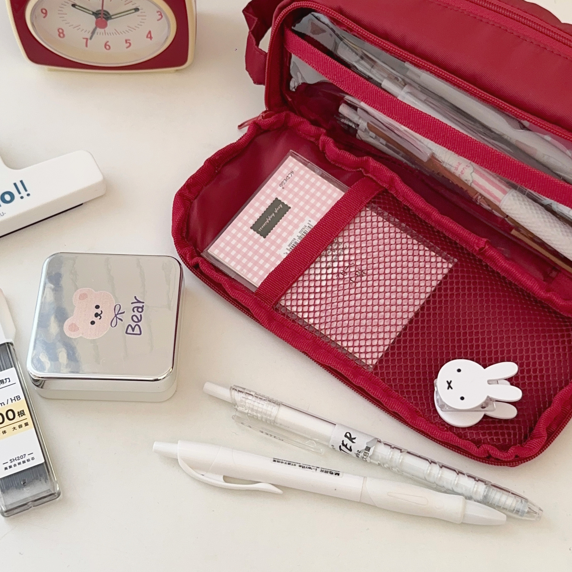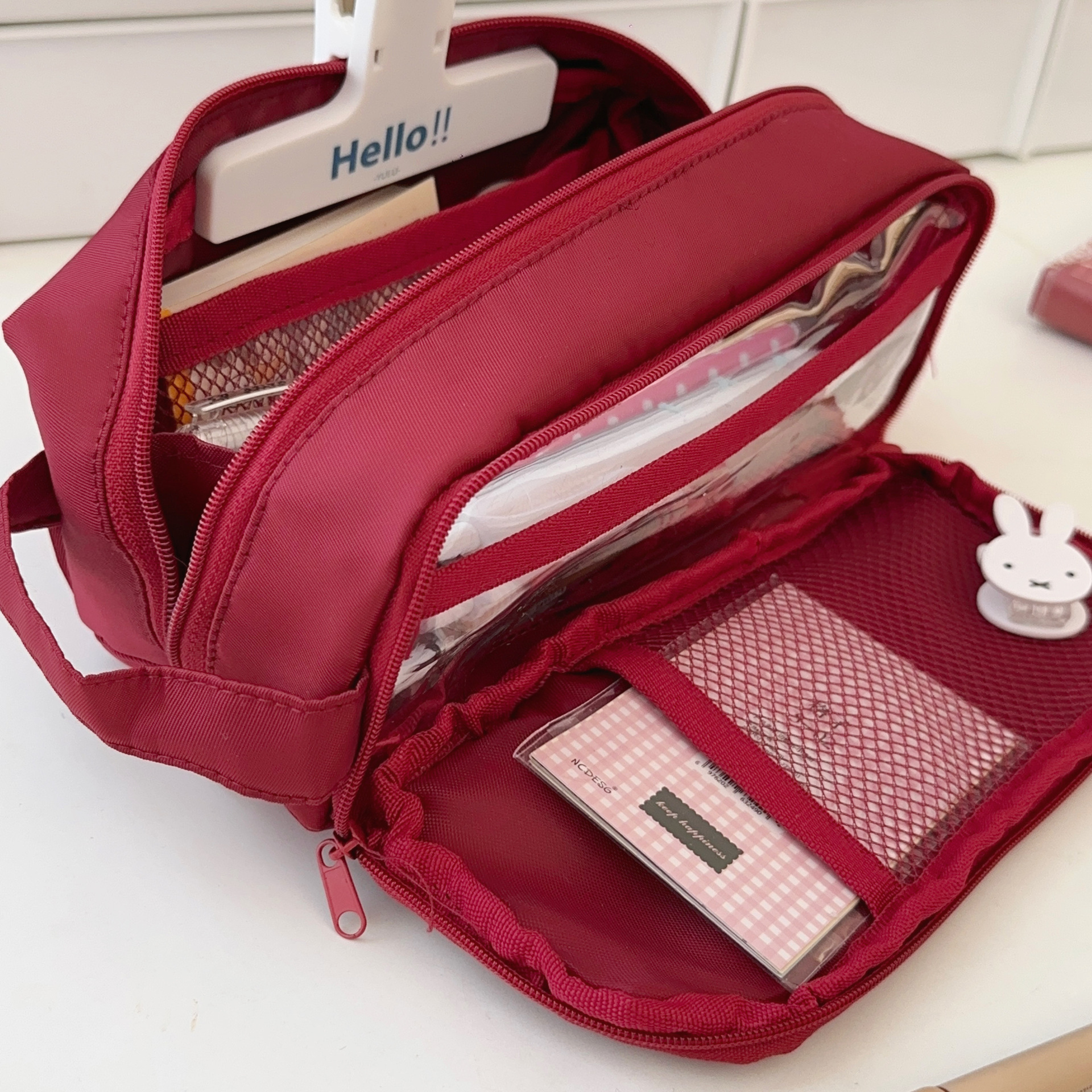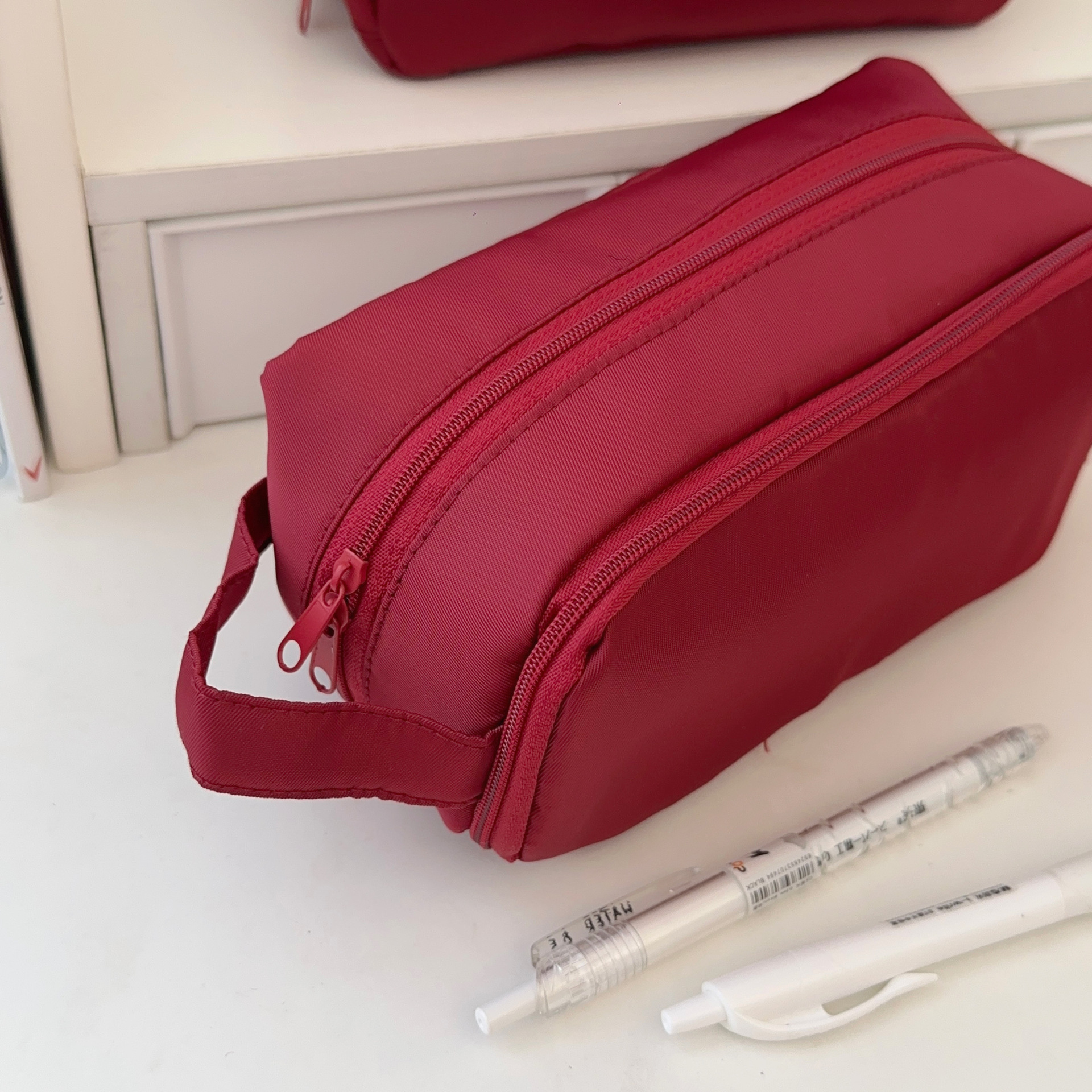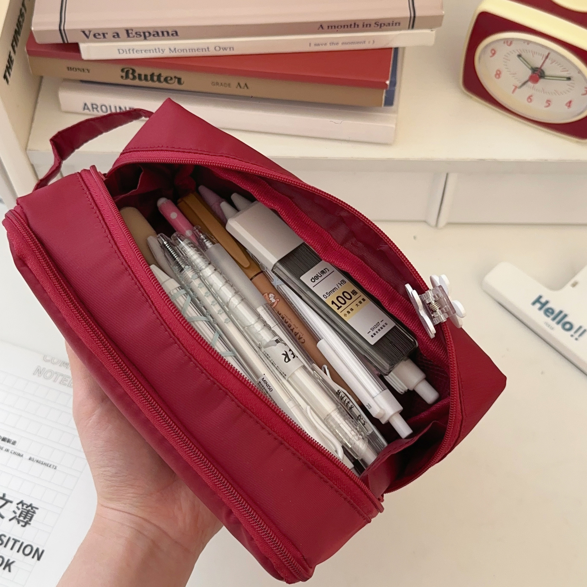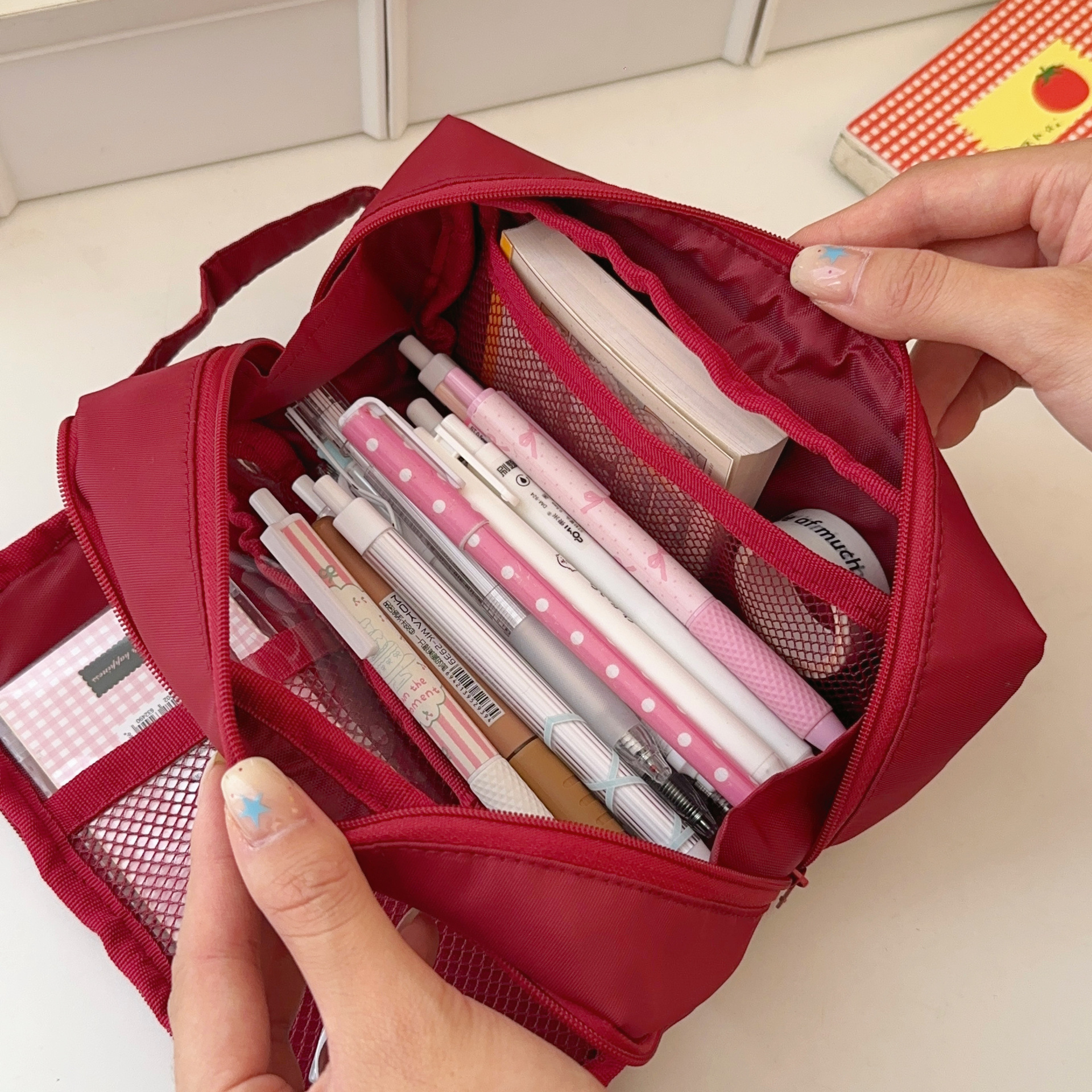 일본 스타일의 레드북과 같은 디자인의 휴대용 필통, 고등학생을 위한 심플하고 대용량의 나일론 다기능 필통, 문구함스토어 가기