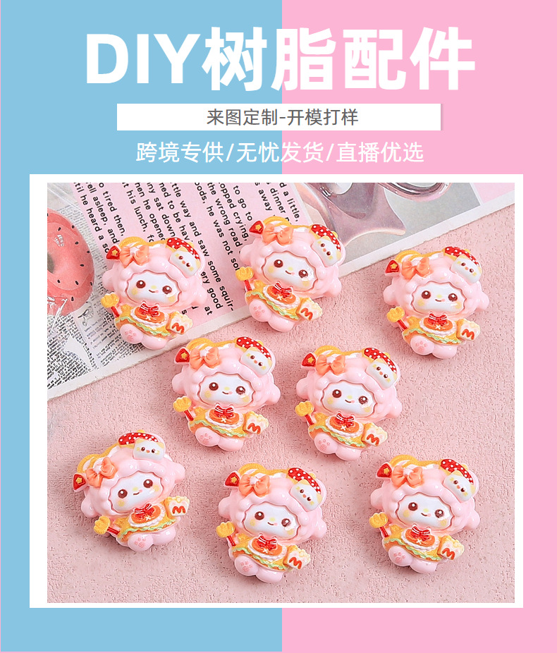 크리 에이 티브 패스트 푸드 귀여운 양 만화 수제 diy 크림 접착제 수지 작은 액세서리 구멍 신발 버클 재료 도매