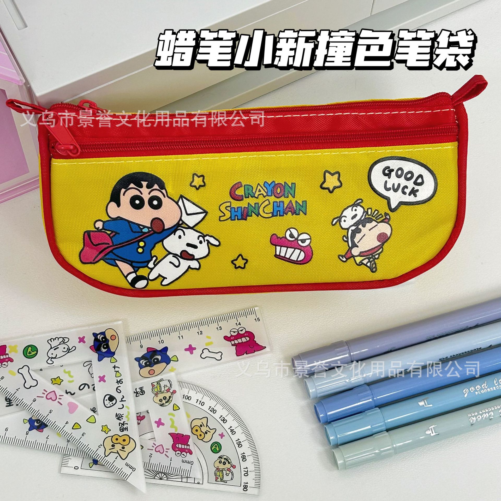 일본 라부 블록 연필 가방, 귀여운 크레용 신짱 문구 보관 학생 대용량 만화 필통