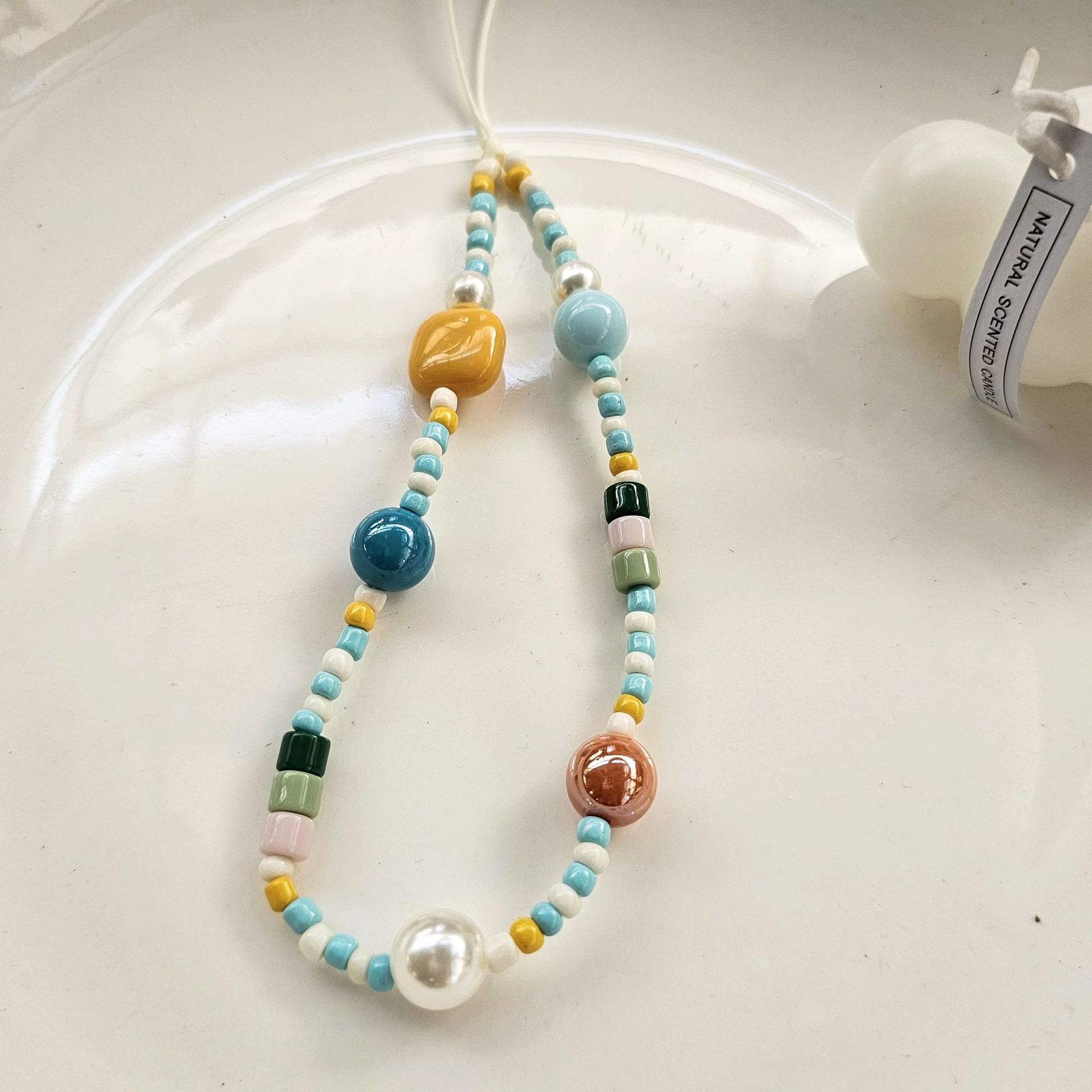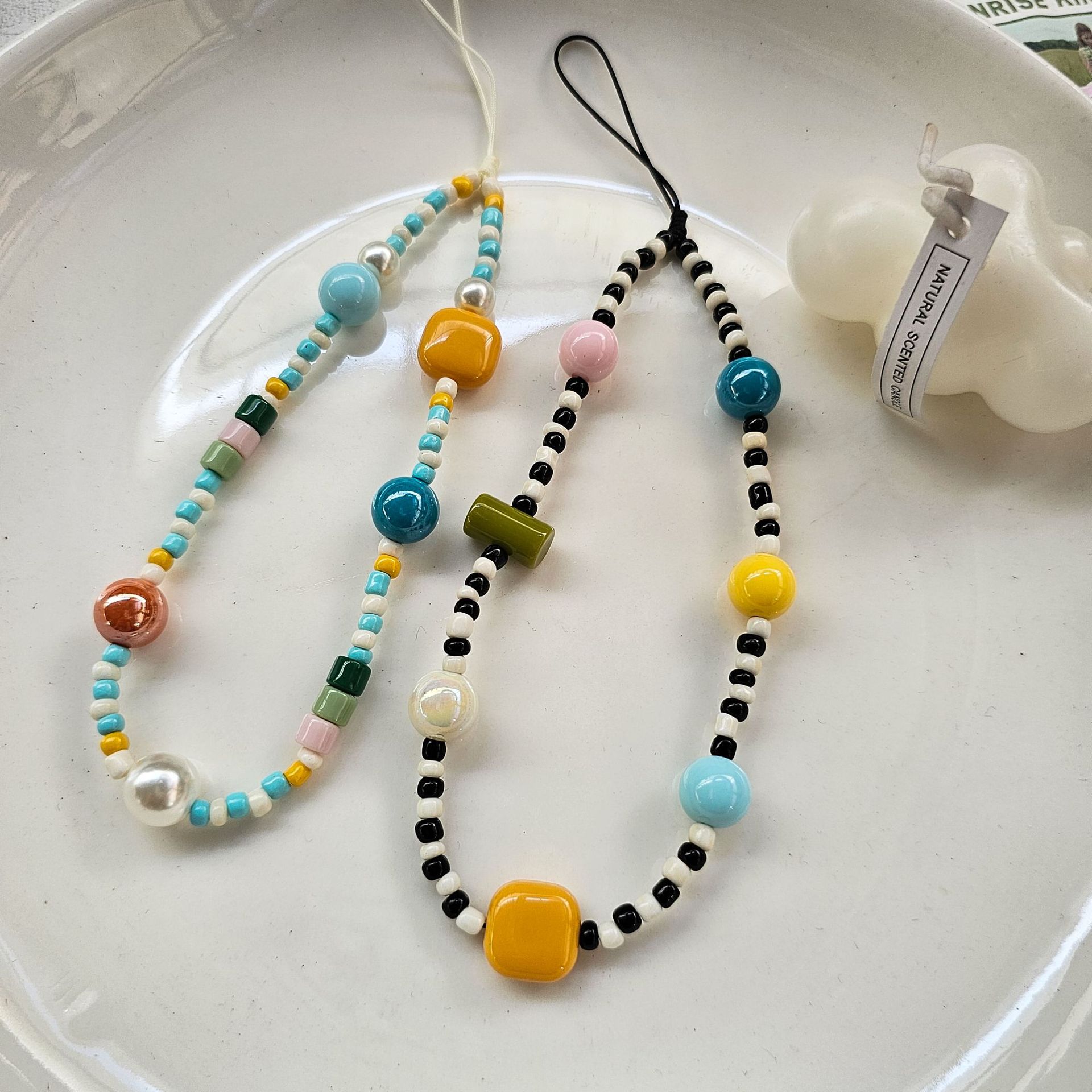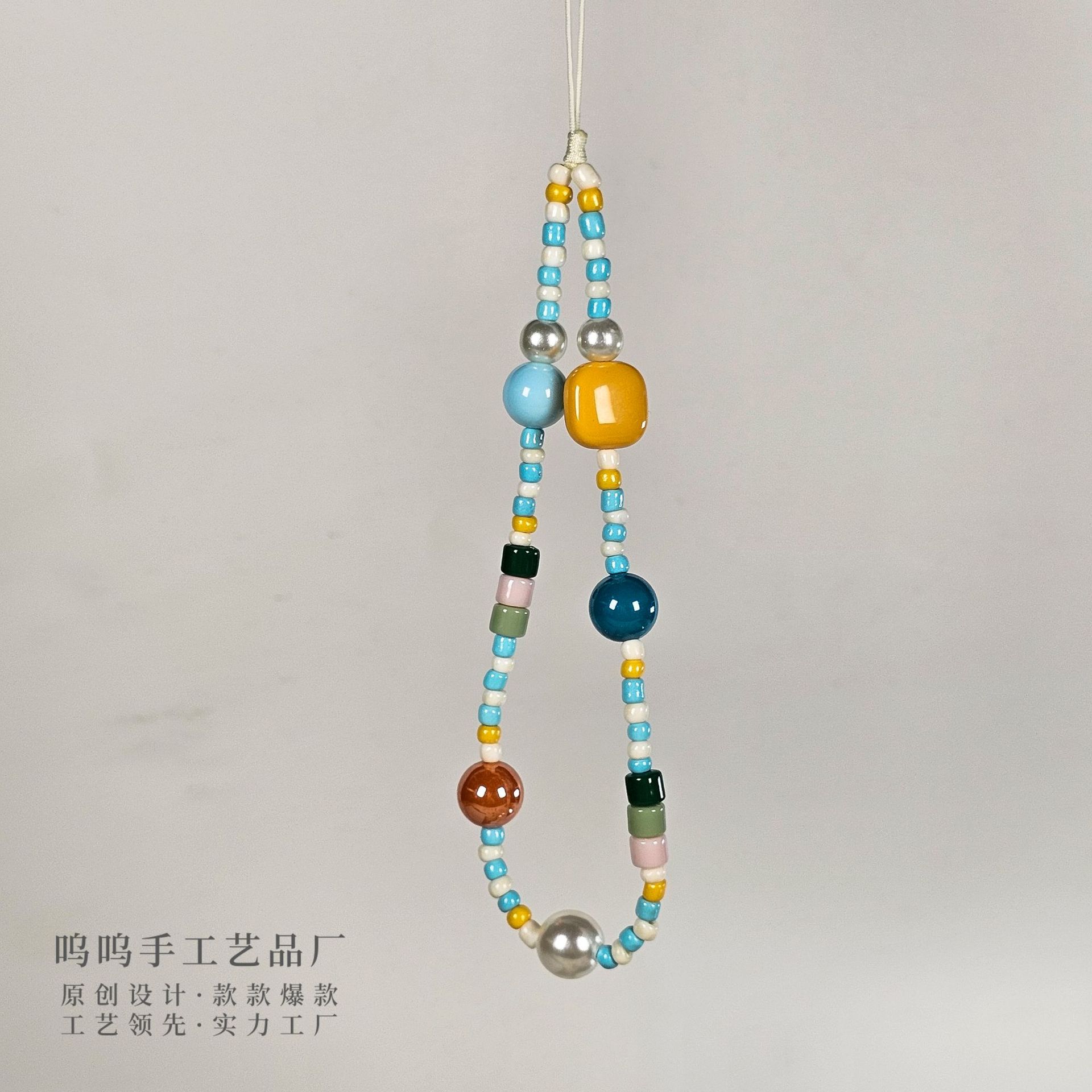 국경 간 인기 도파민 쌀 구슬 휴대 전화 체인 틈새 ccd 카메라 교수형 체인 가방 펜던트 펜던트 유럽과 미국 휴대 전화 체인스토어 가기