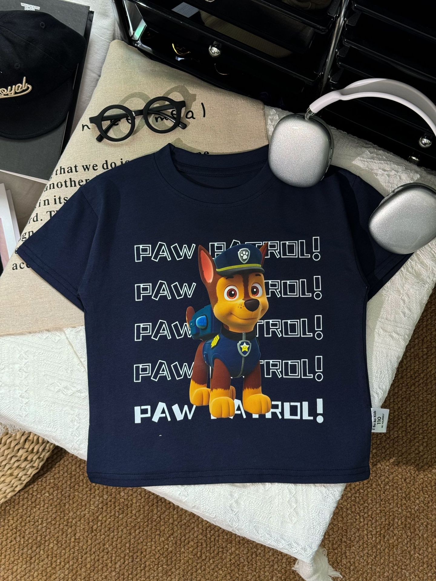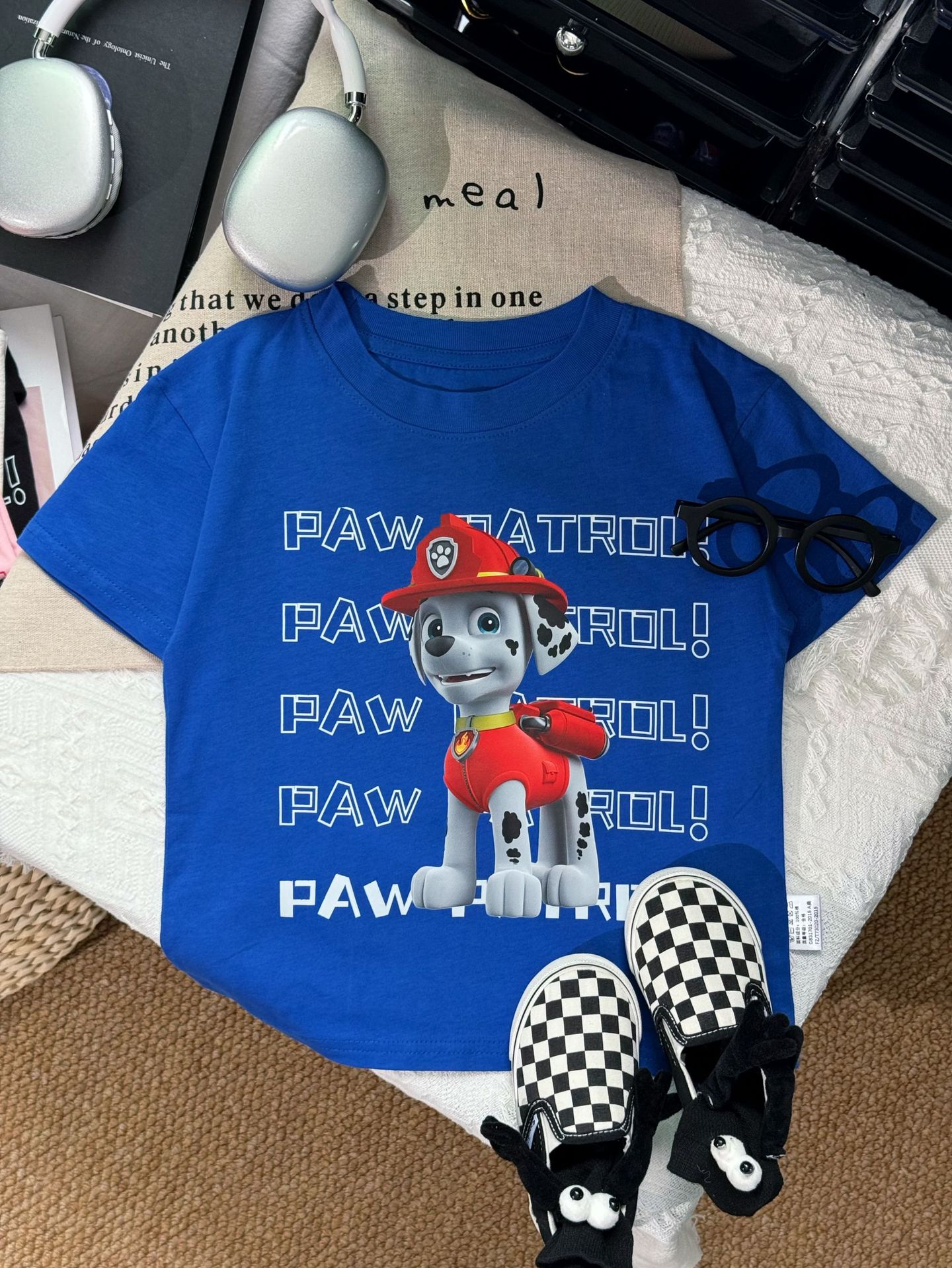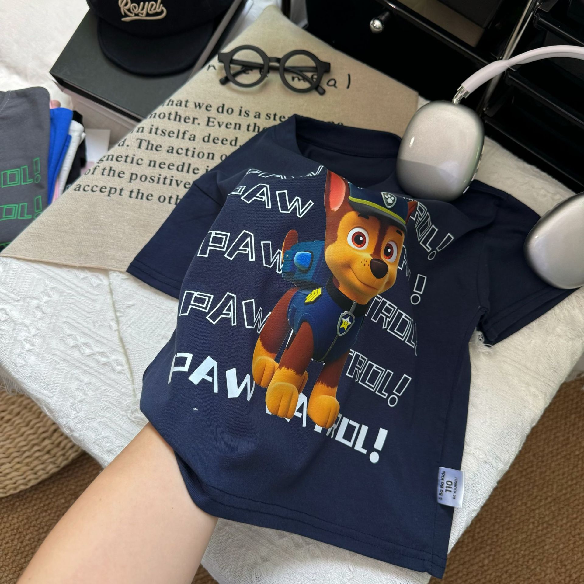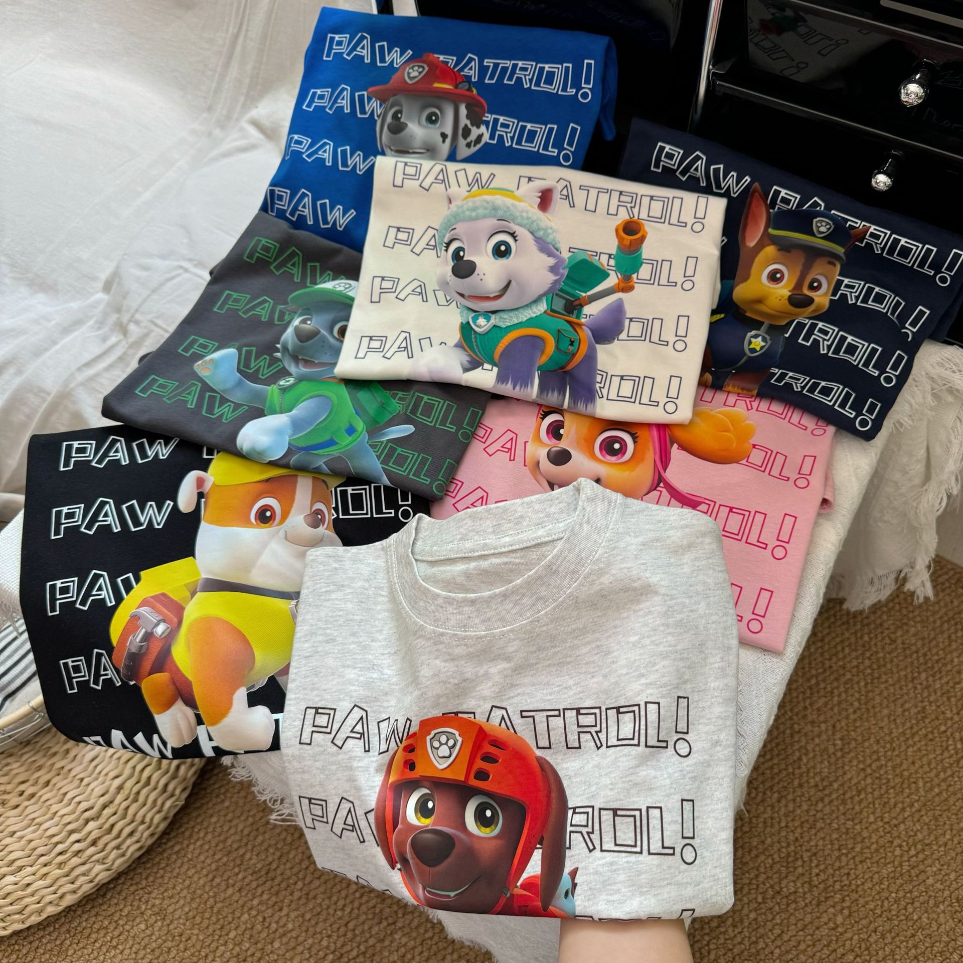 소년과 소녀를위한 어린이 순면 반팔 티셔츠 Paw Team 프린트 티셔츠 만화 애니메이션 패턴 여름 어린이상의
