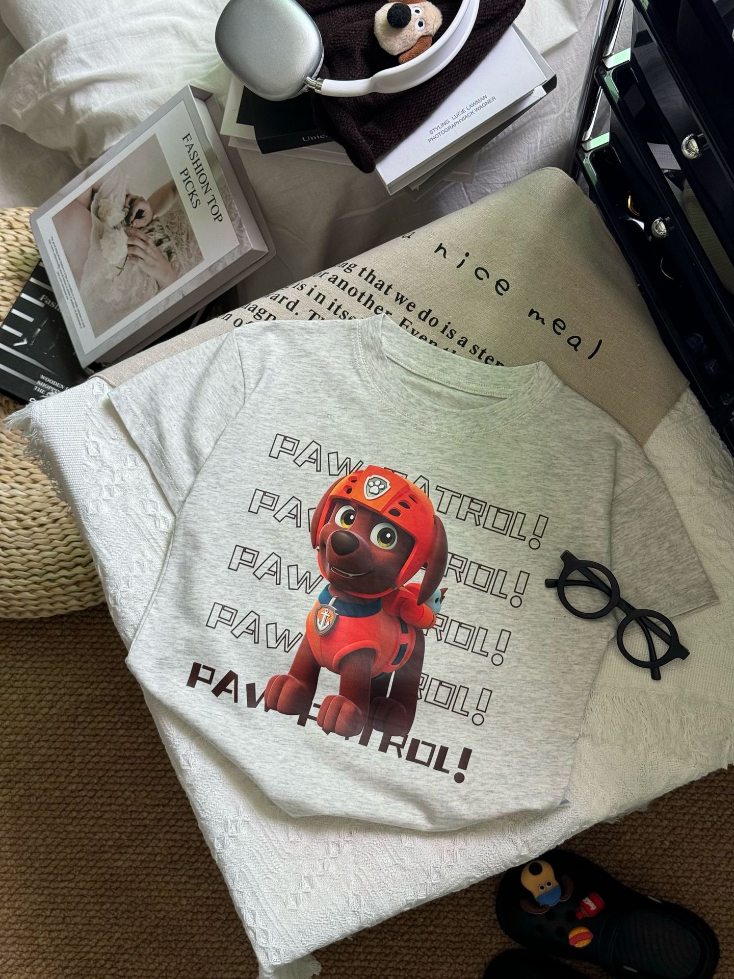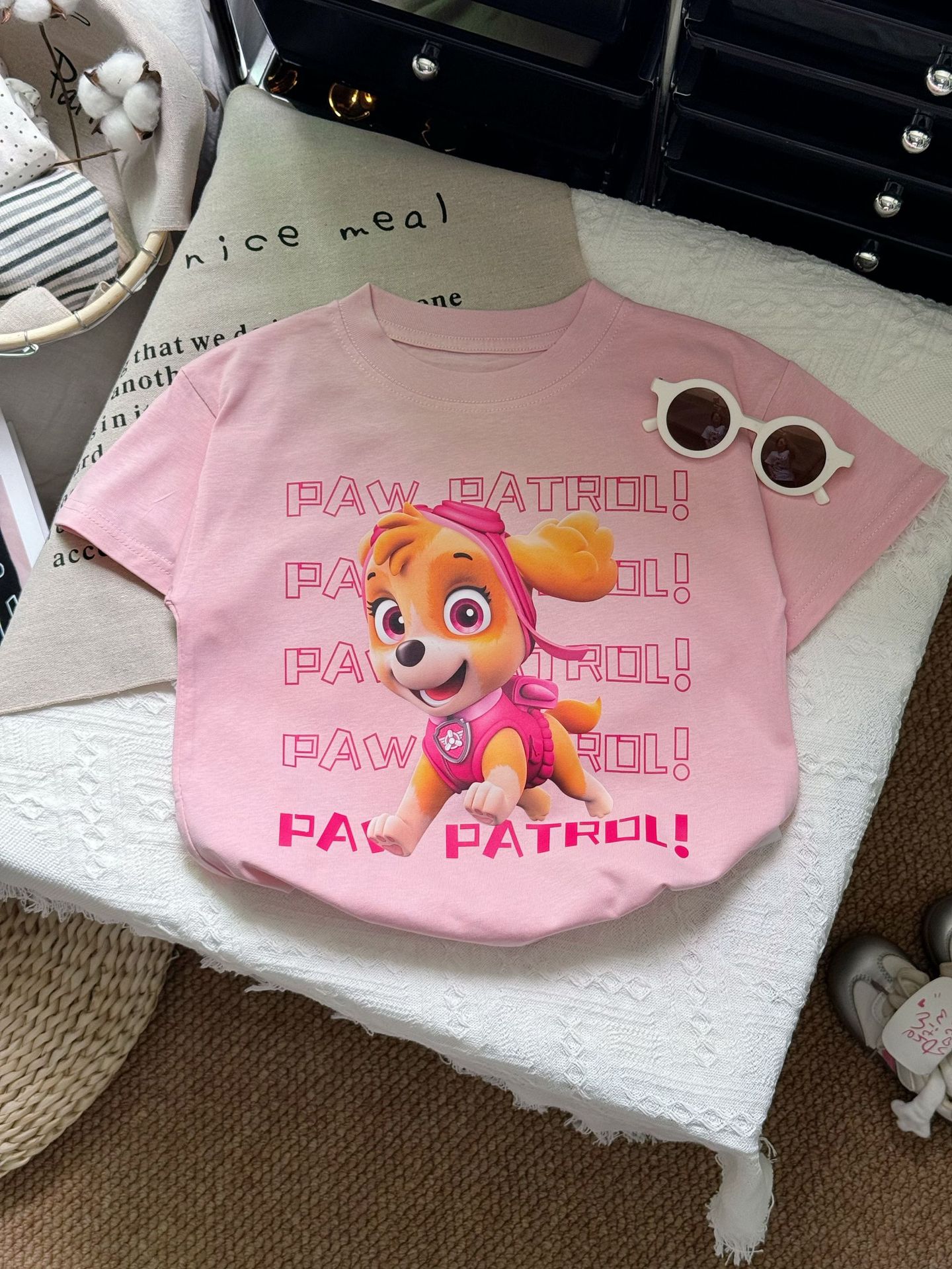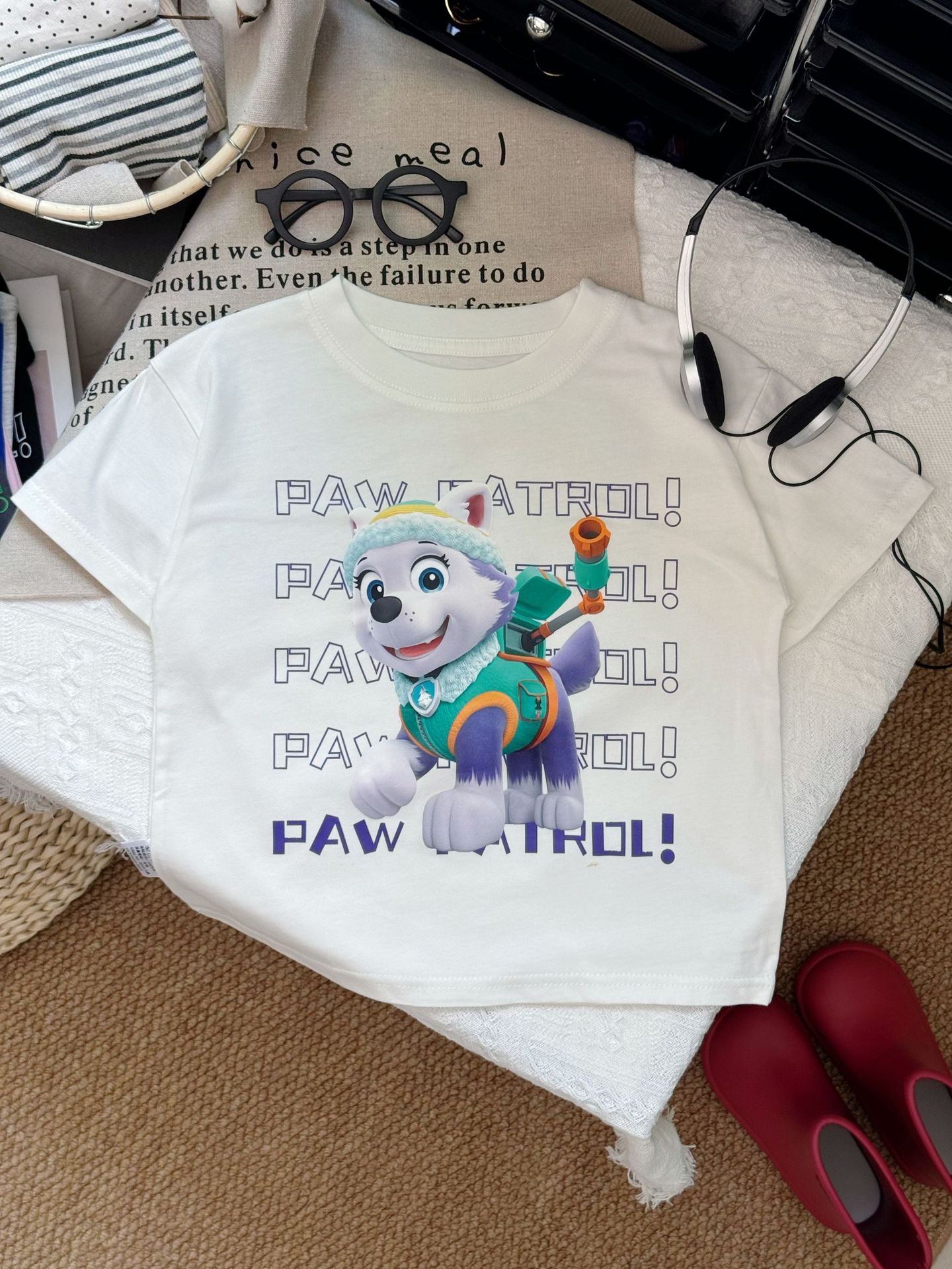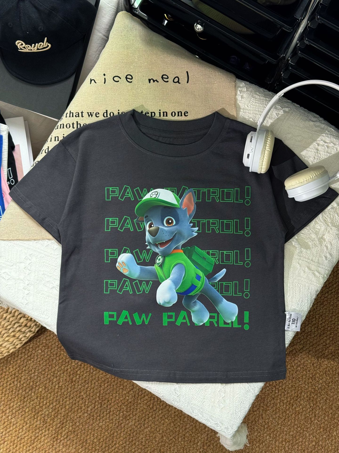 소년과 소녀를위한 어린이 순면 반팔 티셔츠 Paw Team 프린트 티셔츠 만화 애니메이션 패턴 여름 어린이상의