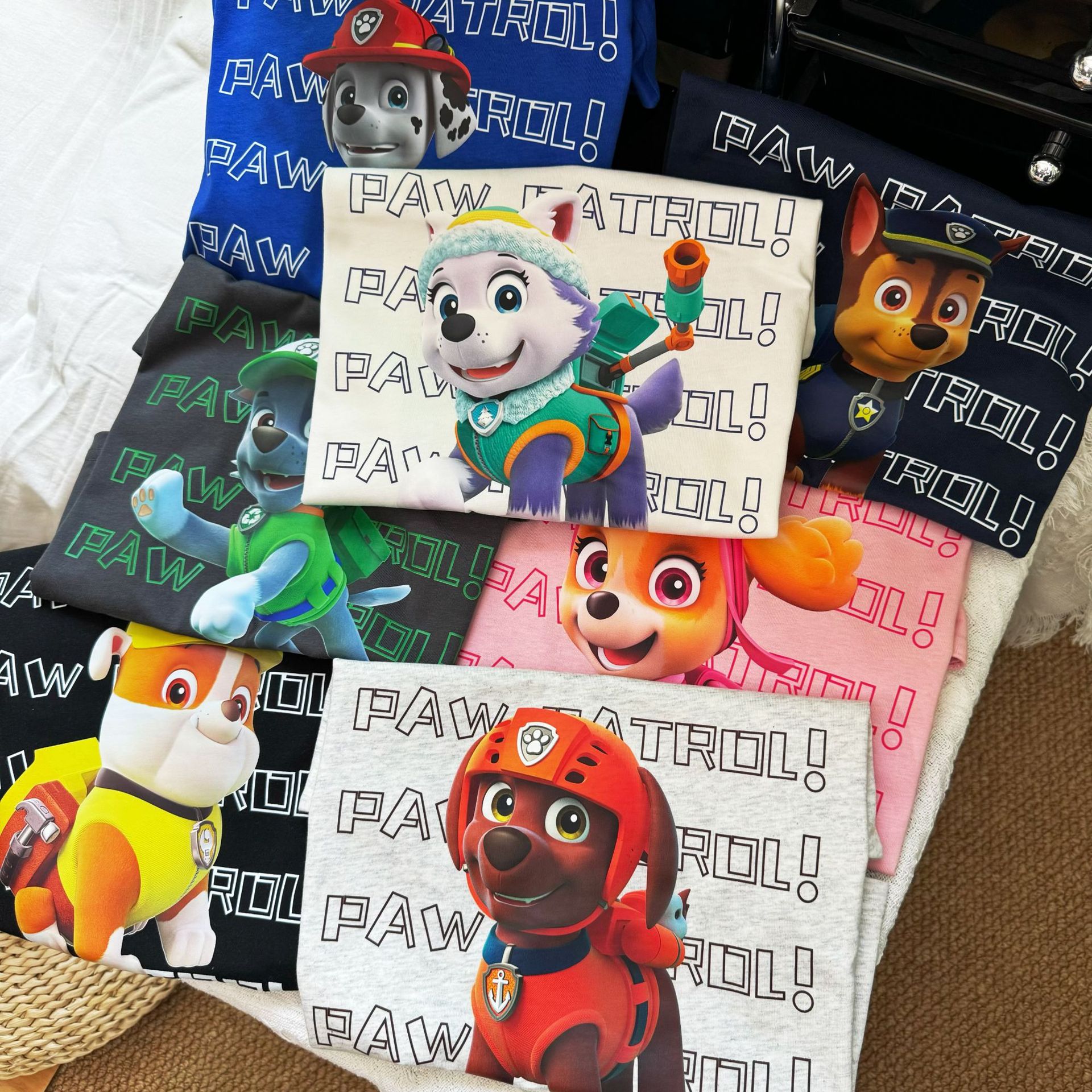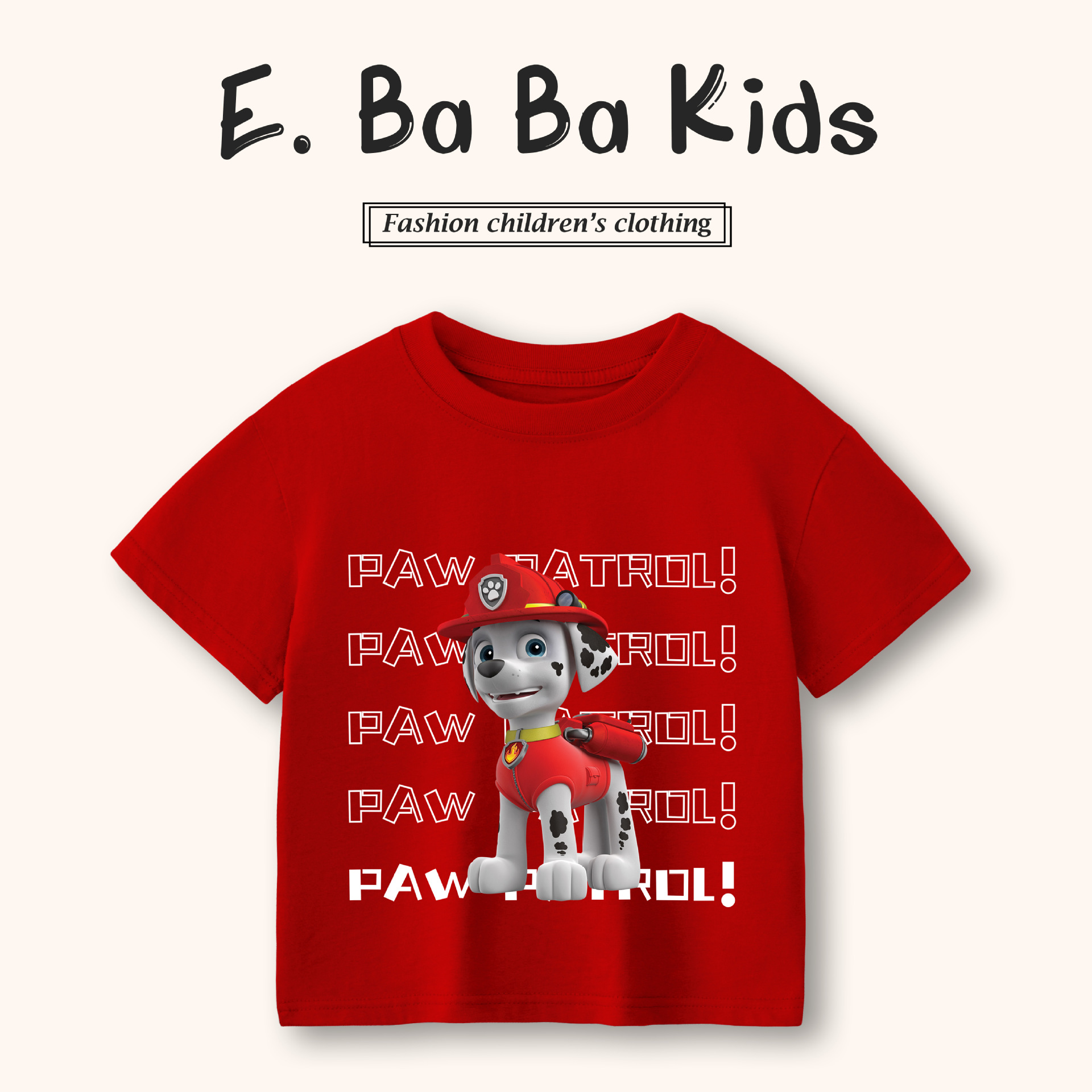 소년과 소녀를위한 어린이 순면 반팔 티셔츠 Paw Team 프린트 티셔츠 만화 애니메이션 패턴 여름 어린이상의스토어 가기