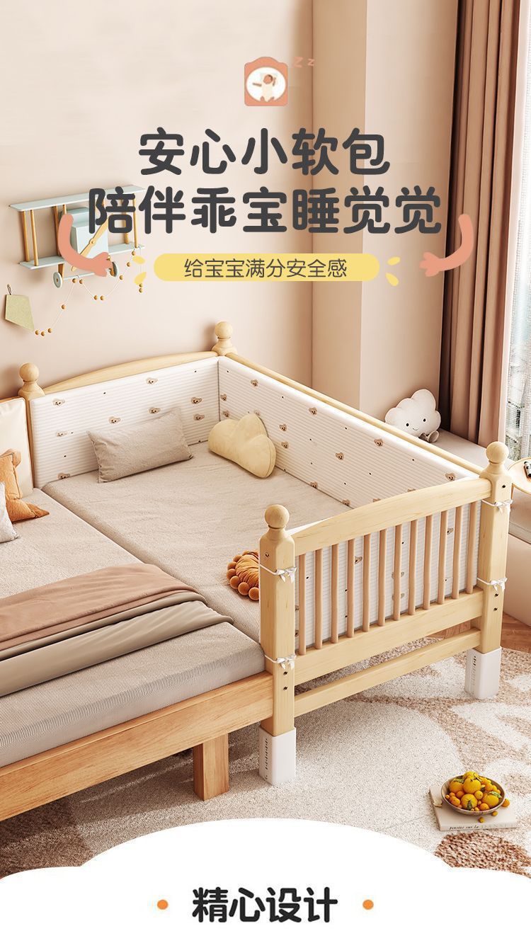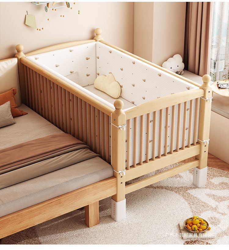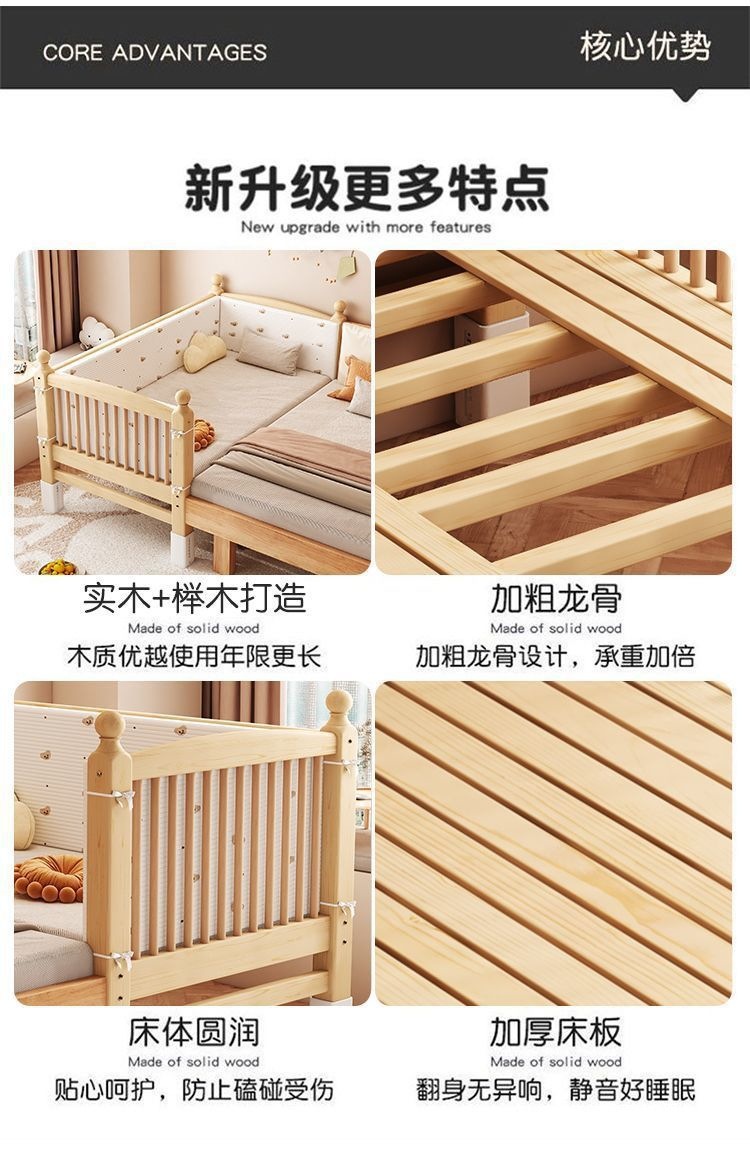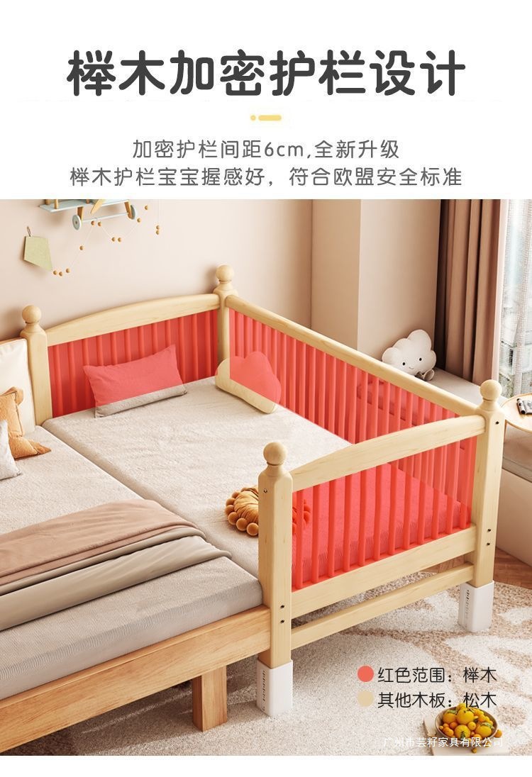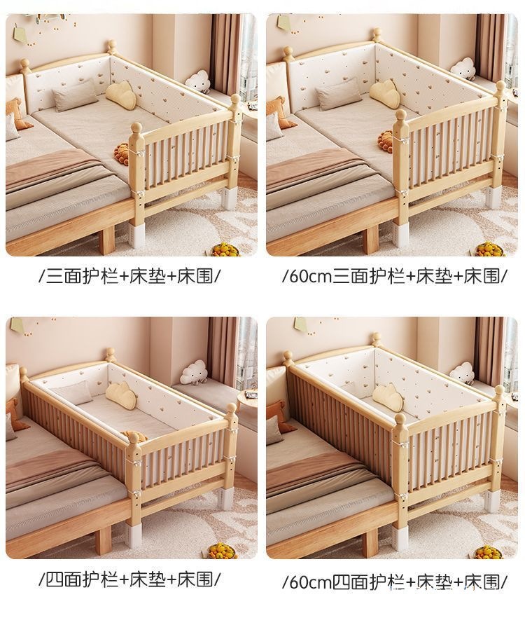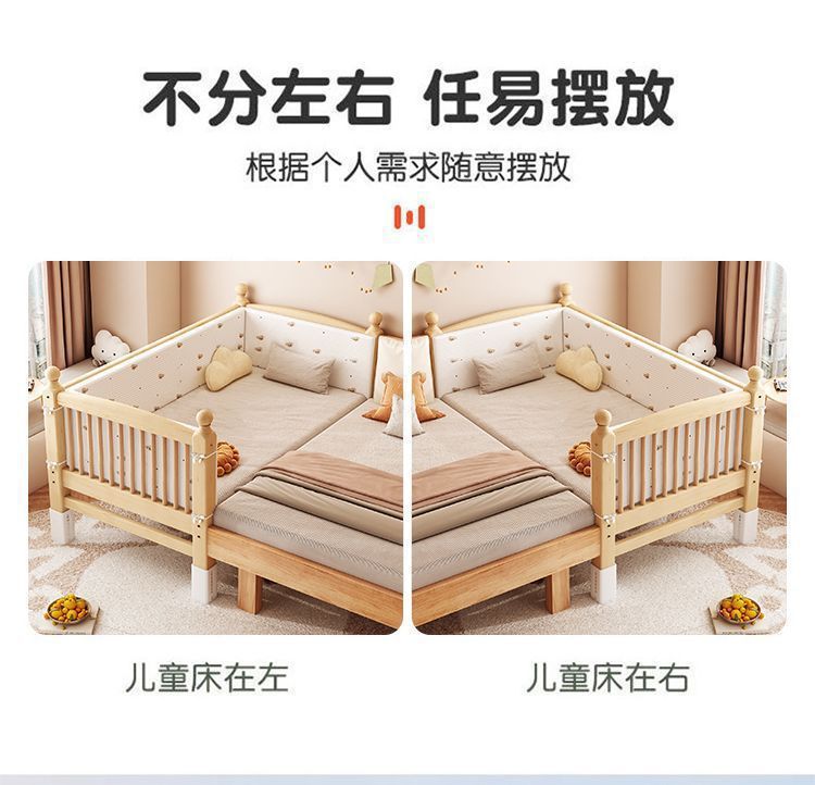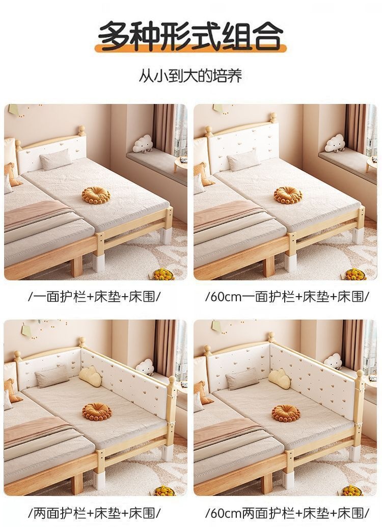 아기 접합 침대 확대 침실 대형 침대 옆 가드 레일 신생아 유아용 침대 단단한 나무 어린이 침대스토어 가기