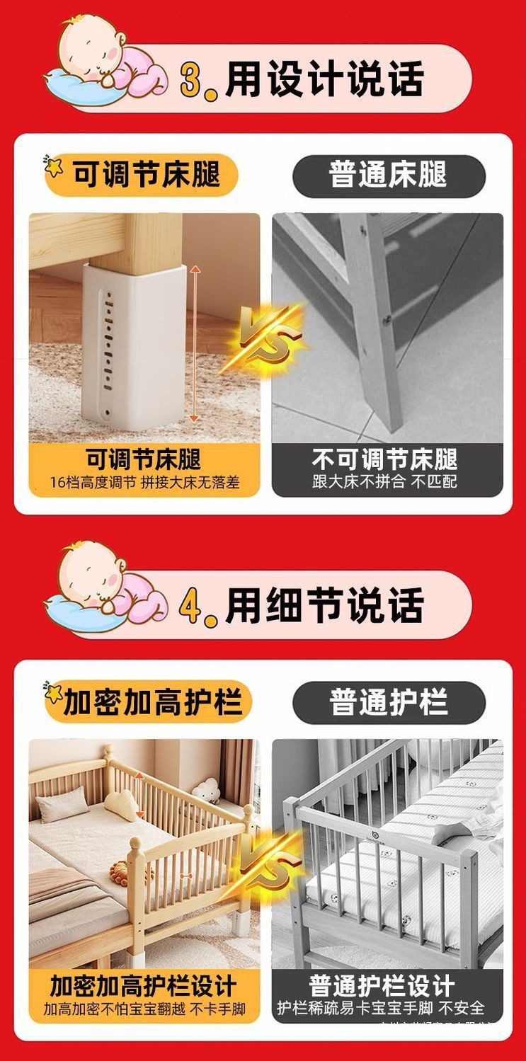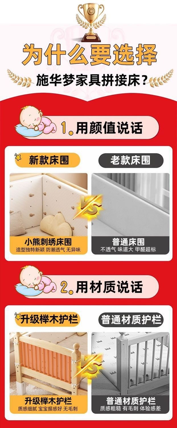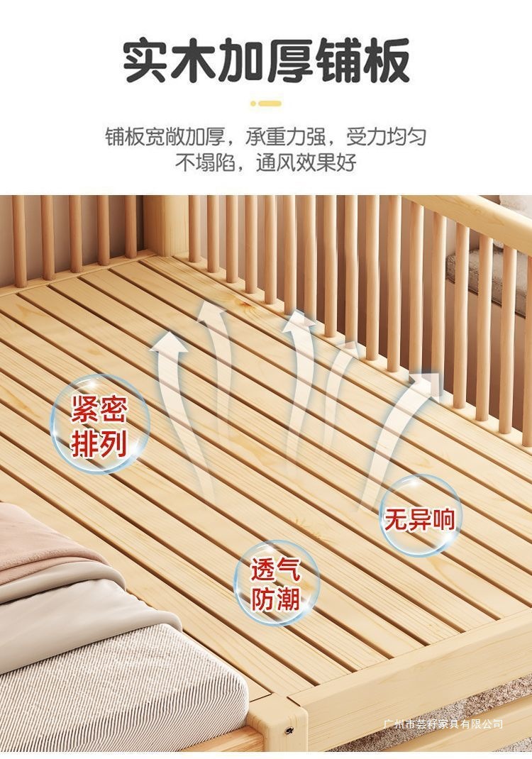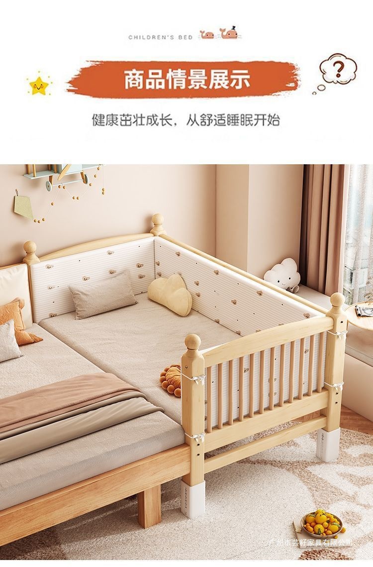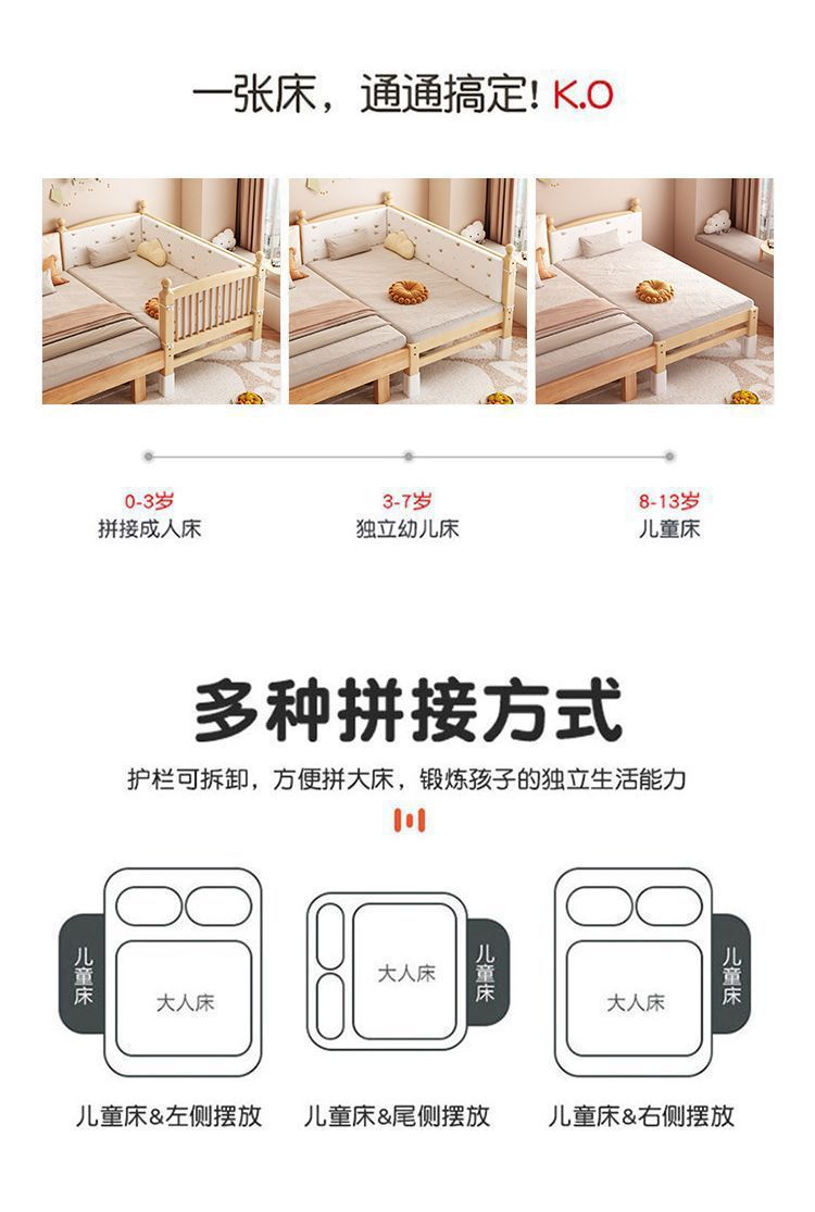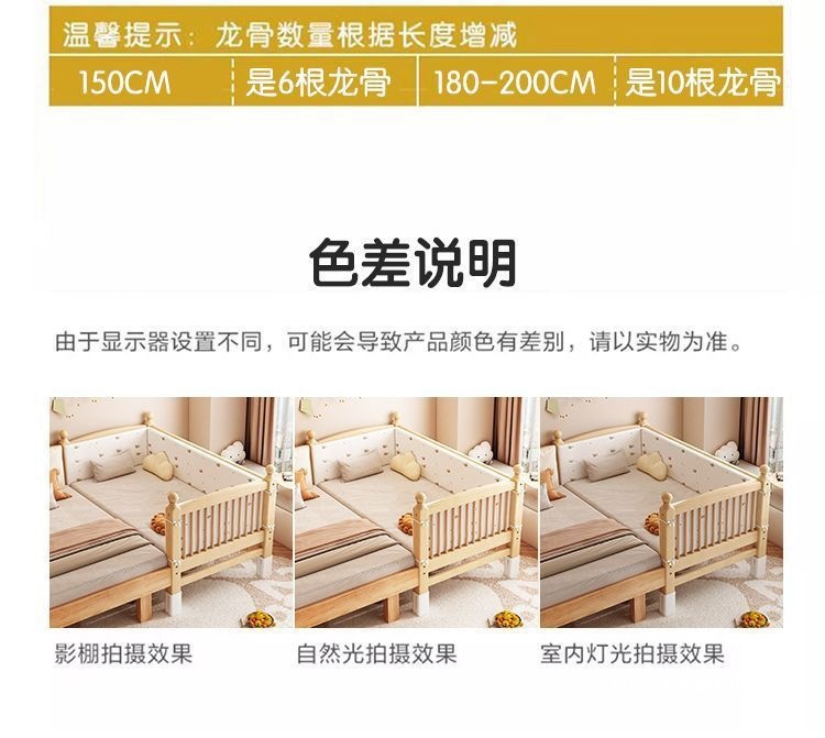 아기 접합 침대 확대 침실 대형 침대 옆 가드 레일 신생아 유아용 침대 단단한 나무 어린이 침대스토어 가기