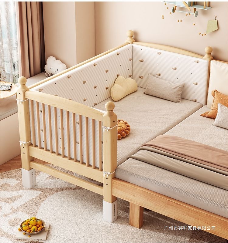 아기 접합 침대 확대 침실 대형 침대 옆 가드 레일 신생아 유아용 침대 단단한 나무 어린이 침대