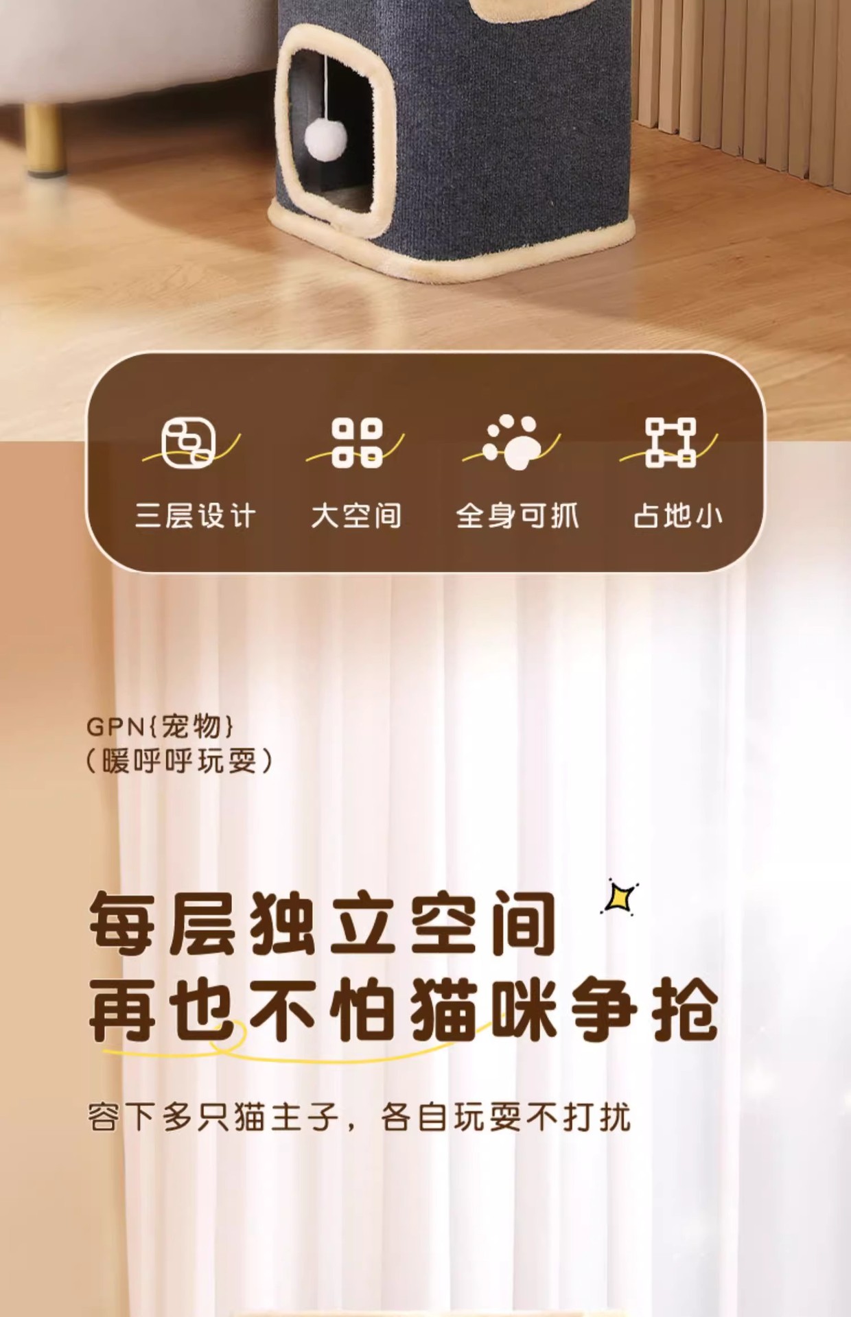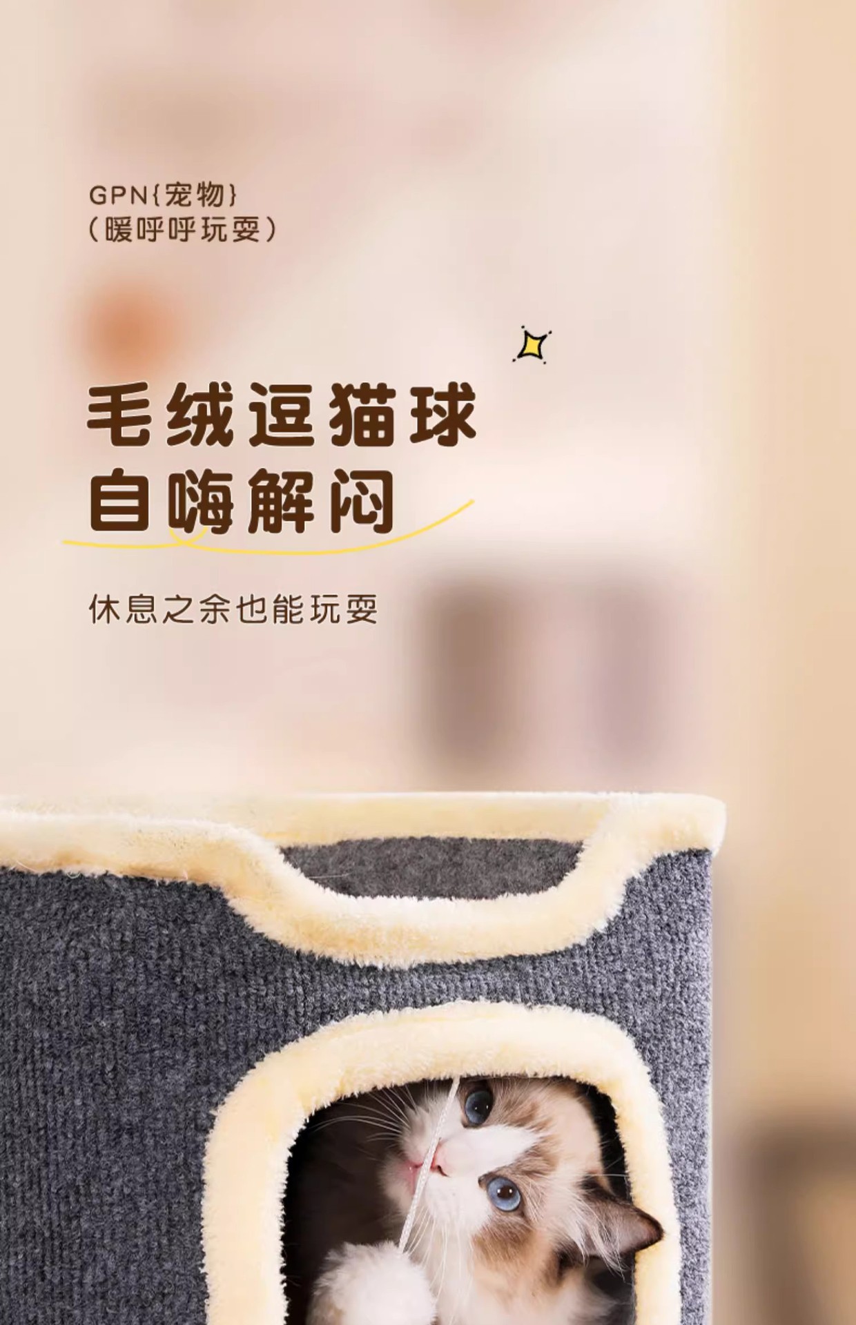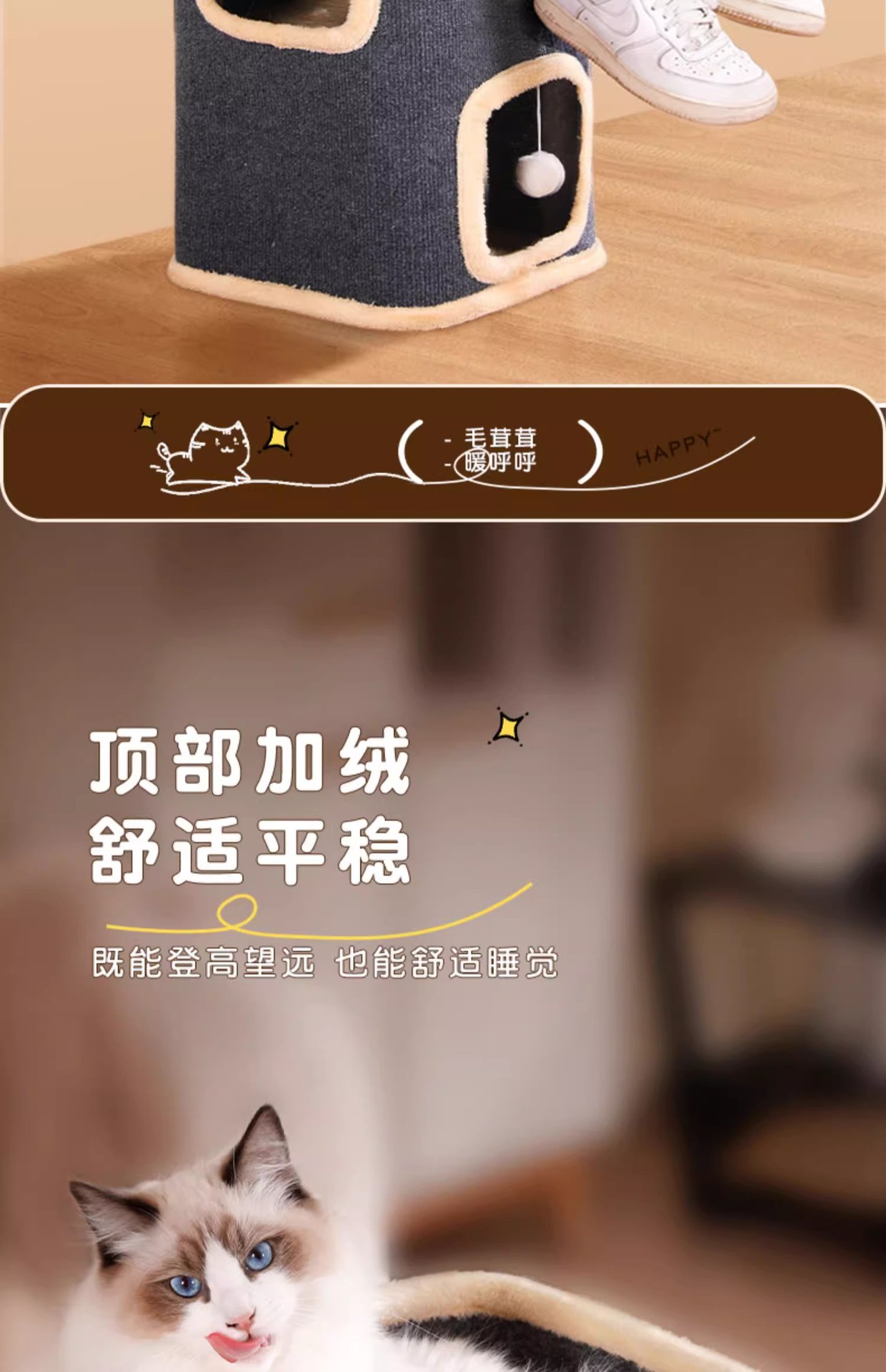 고양이 클라이밍 프레임, 고양이 둥지, 고양이 트리 일체형 겨울 따뜻한 고양이 스크래치 보드 버킷, 이중층 겨울 다층 나무 구멍 고양이 둥지스토어 가기
