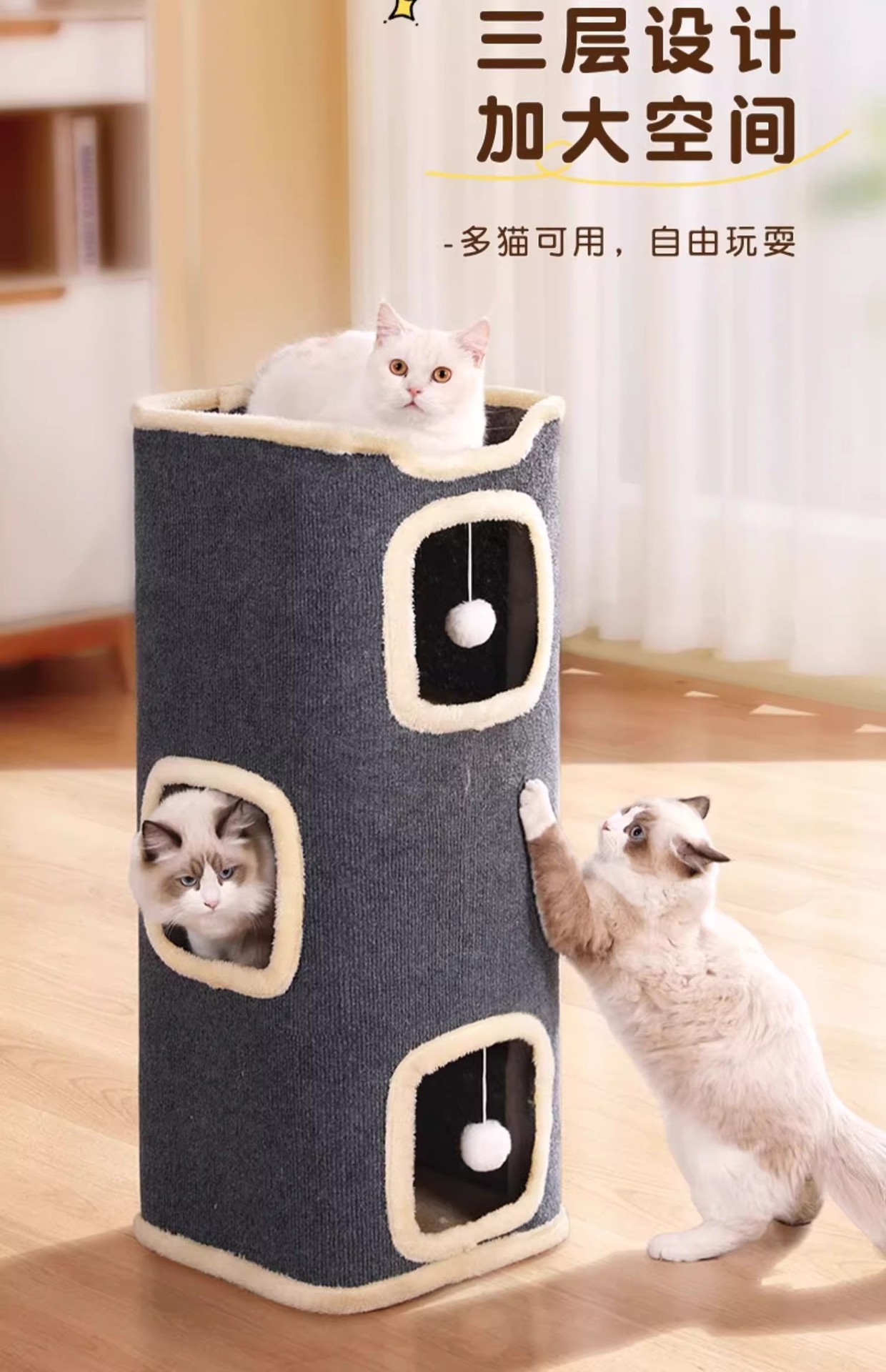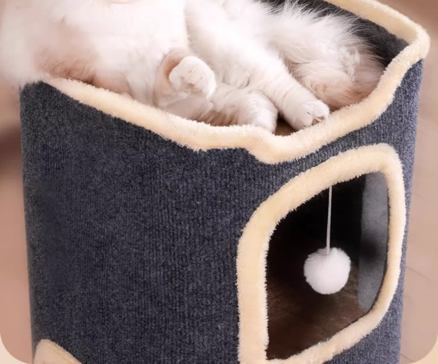 고양이 클라이밍 프레임, 고양이 둥지, 고양이 트리 일체형 겨울 따뜻한 고양이 스크래치 보드 버킷, 이중층 겨울 다층 나무 구멍 고양이 둥지