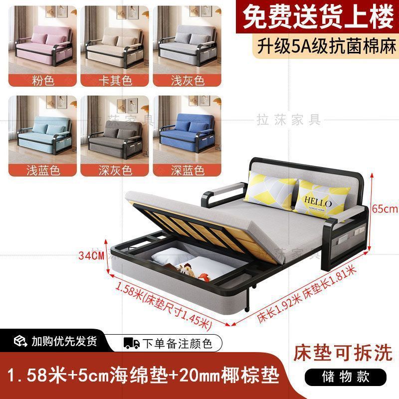 소파 베드 접이식 이중 목적 작은 아파트 거실 발코니 다기능 침대 2025 새로운 패브릭 싱글 텔레스코픽 침대스토어 가기