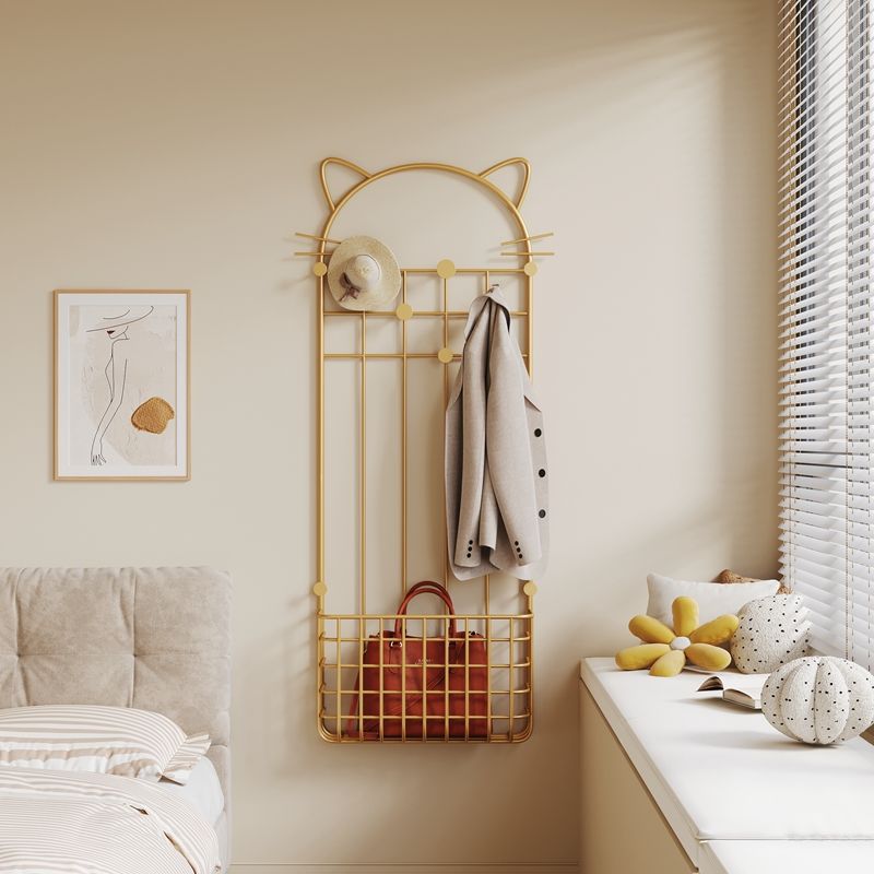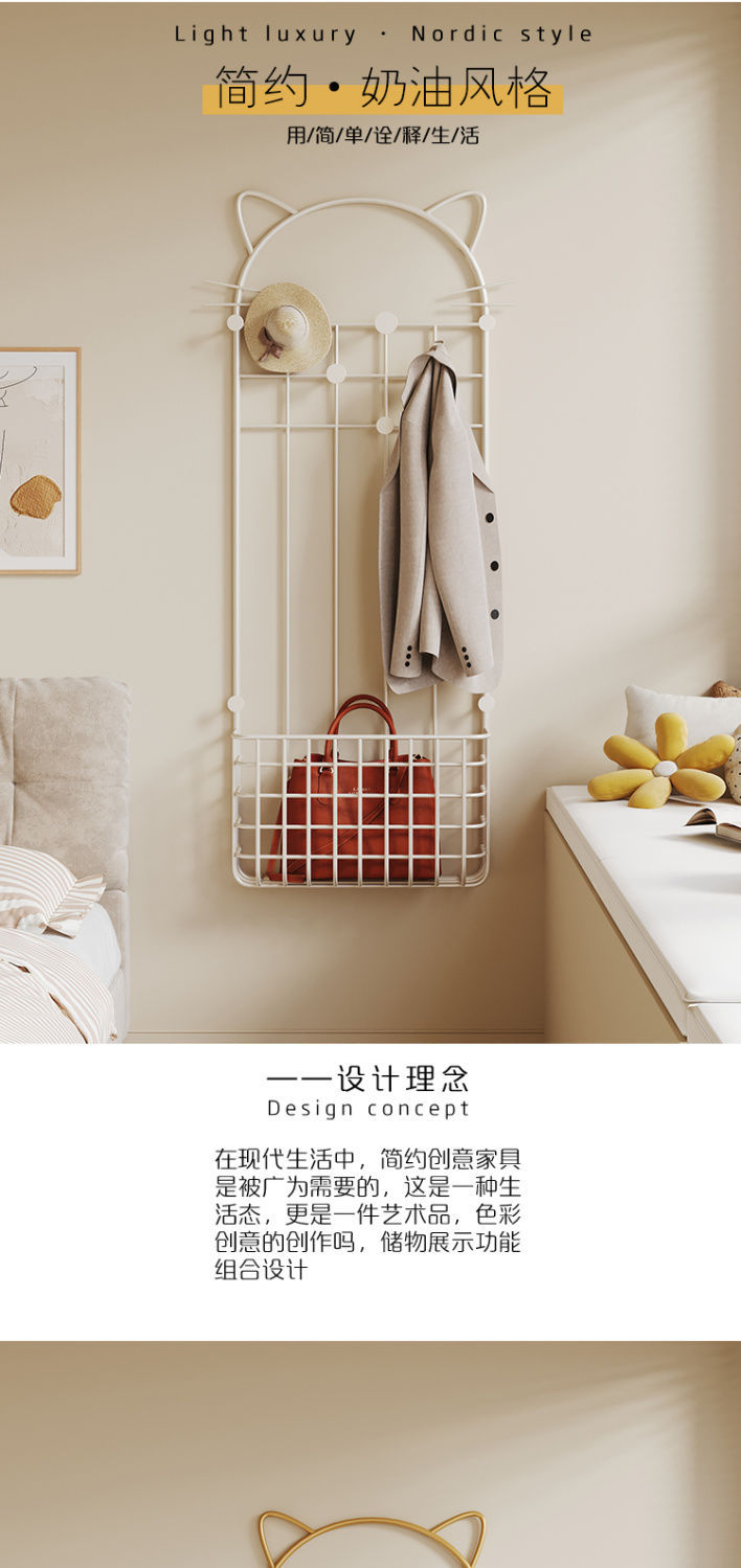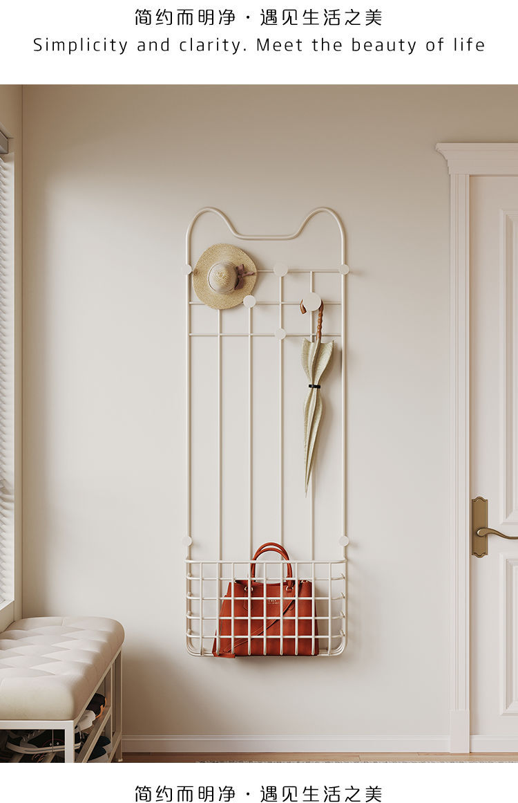 크림 스타일 벽걸이형 코트 랙, 가정용 침실 벽걸이형 랙, 심플 모던 의류 보관 랙