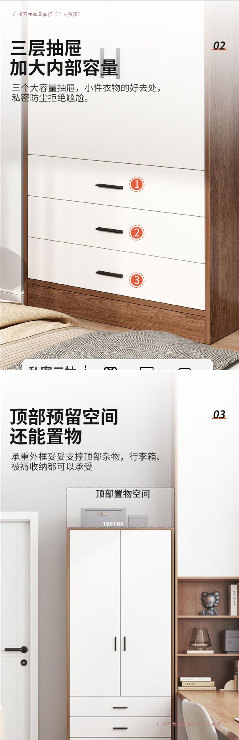 • 140CM 문 4개, 서랍 3개, 호두풍(위층 배송)