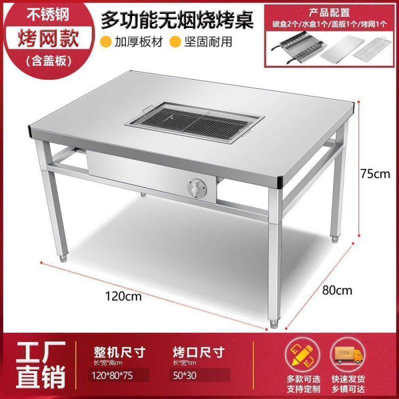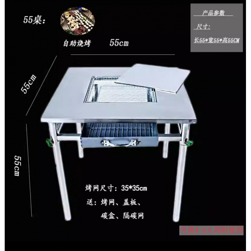 특별 가격 무연 바베큐 테이블 셀프 서비스 상업용 그릴 야외 안뜰 숯 가게 가정용 스테인레스 스틸 양다리 테이블스토어 가기