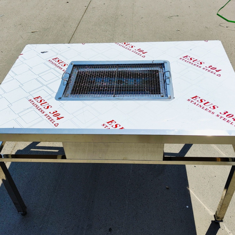 특별 가격 무연 바베큐 테이블 셀프 서비스 상업용 그릴 야외 안뜰 숯 가게 가정용 스테인레스 스틸 양다리 테이블