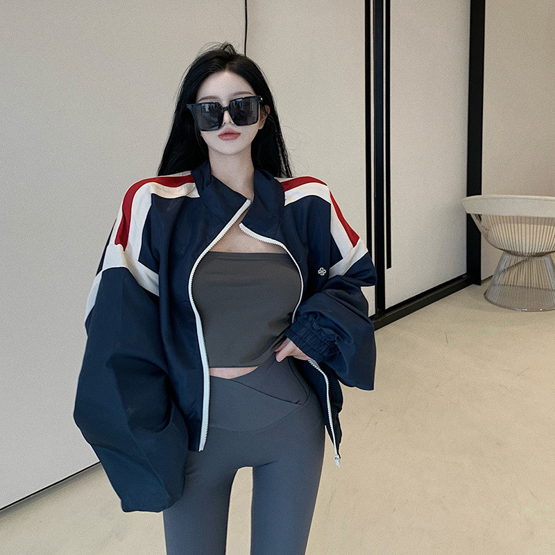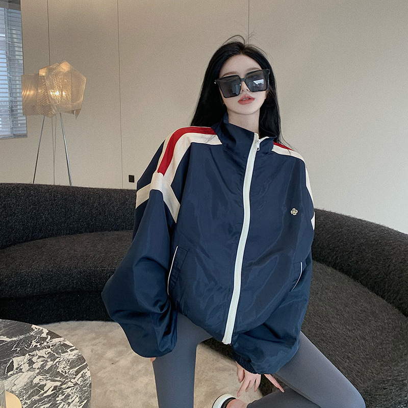 여성용 미국 야구 유니폼 2025 봄, 가을 새로운 핫 스타일 대비 색상 재킷 캐주얼 스포츠 재킷 탑