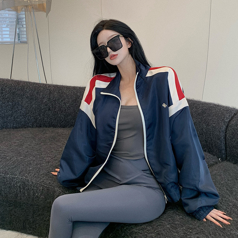 여성용 미국 야구 유니폼 2025 봄, 가을 새로운 핫 스타일 대비 색상 재킷 캐주얼 스포츠 재킷 탑스토어 가기
