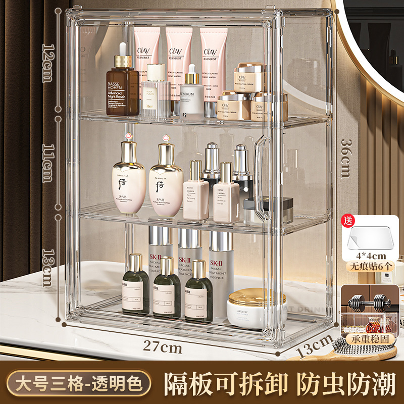 화장품 보관 상자 데스크탑 투명 방진 스킨 케어 제품 화장대 대용량 아크릴 칸막이 보관 선반