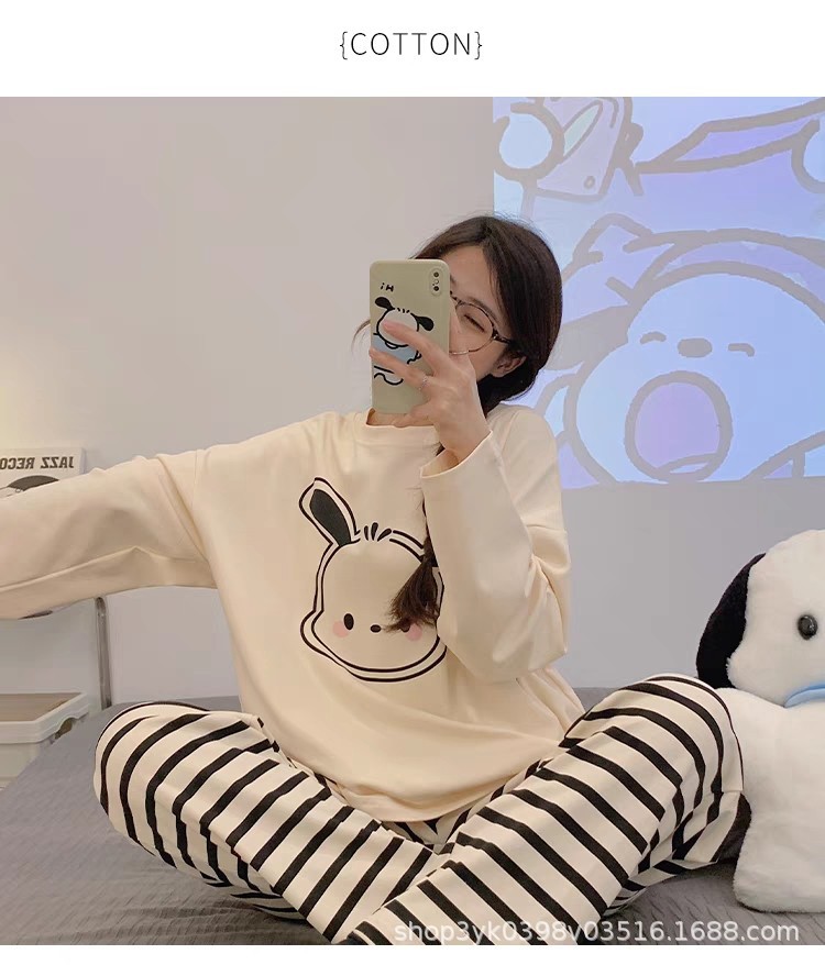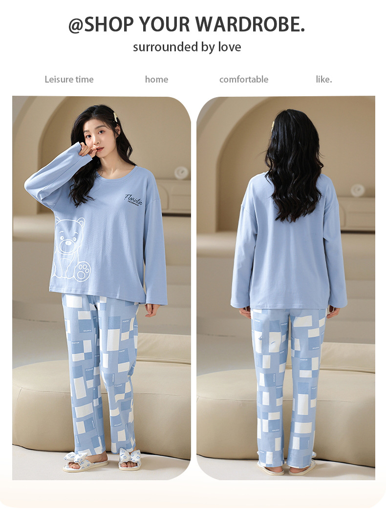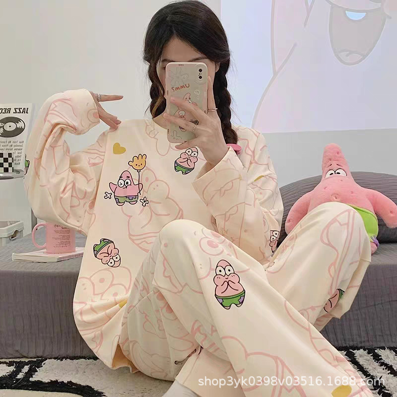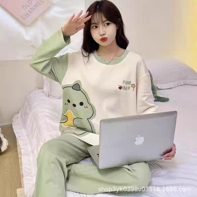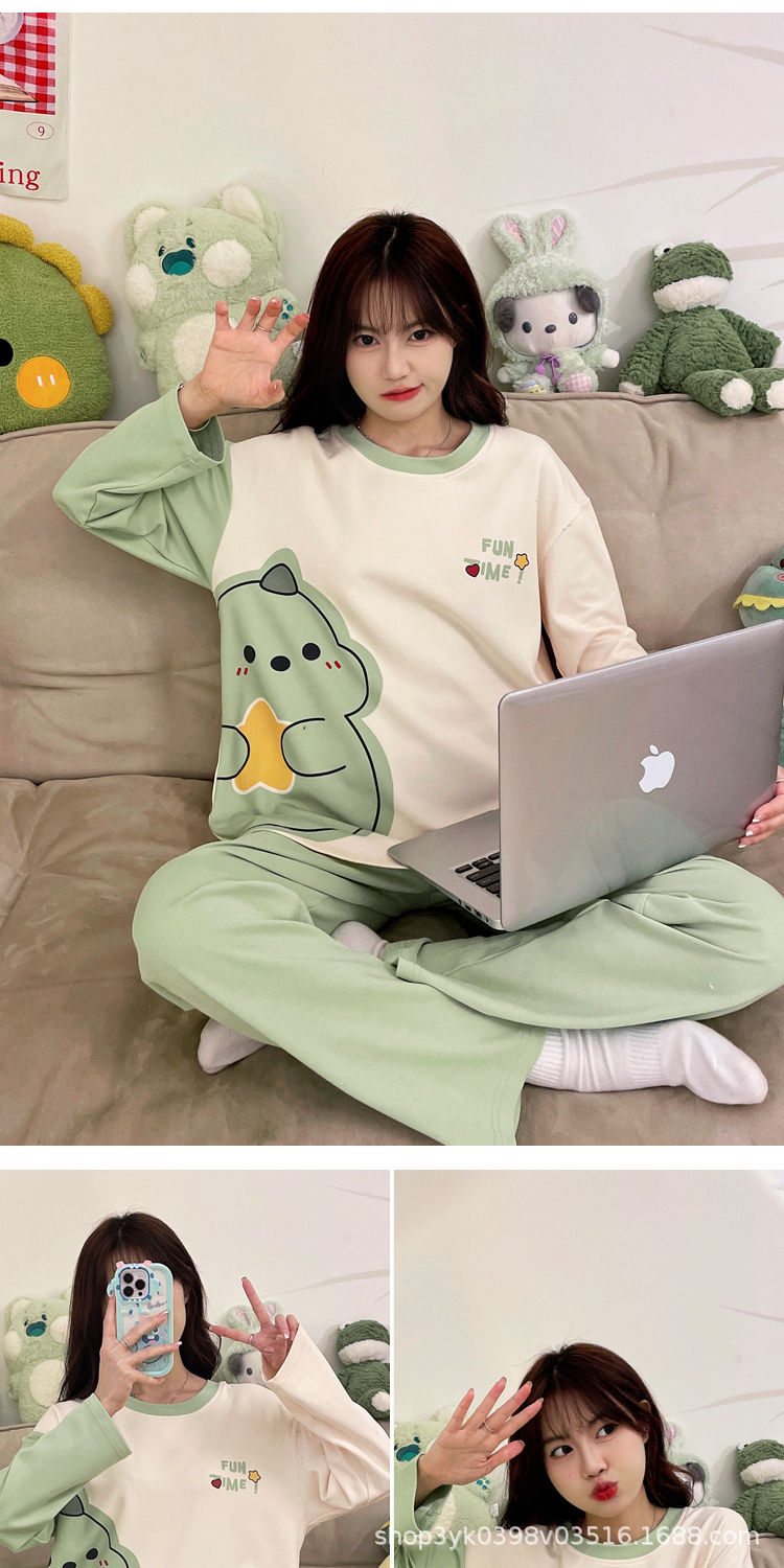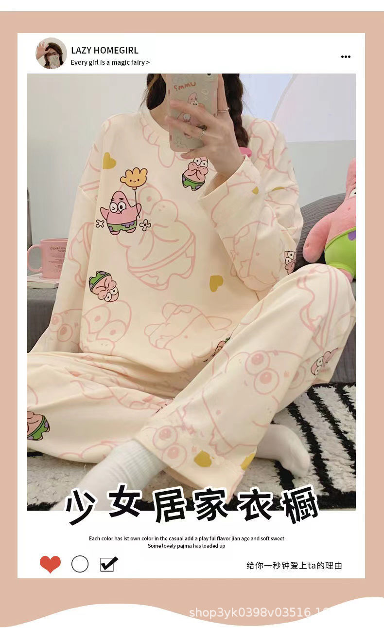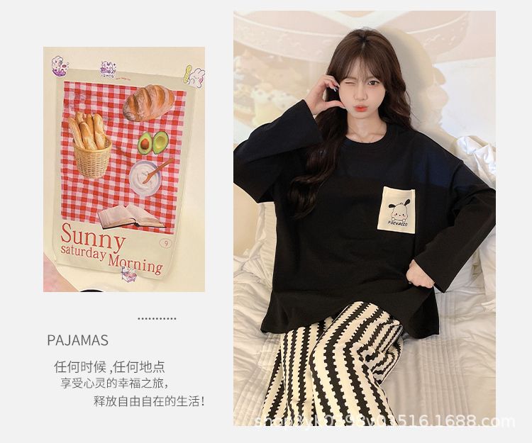 여성용 잠옷 봄, 가을 2025 새로운 긴팔 바지 한국 스타일 캐주얼 줄무늬 홈웨어 세트 도매 외부 착용 가능스토어 가기