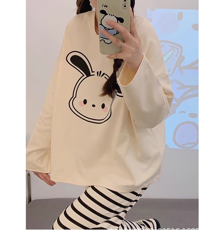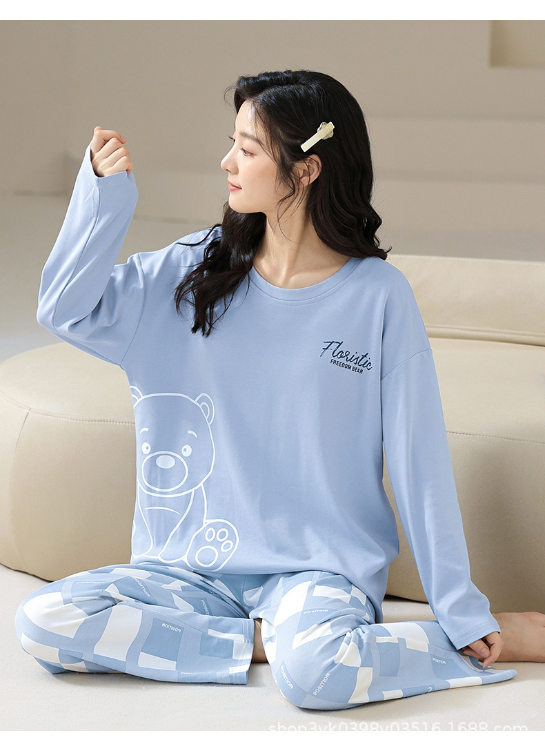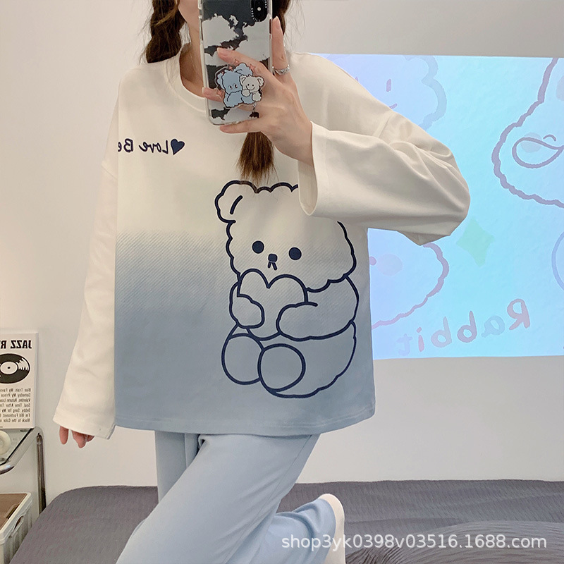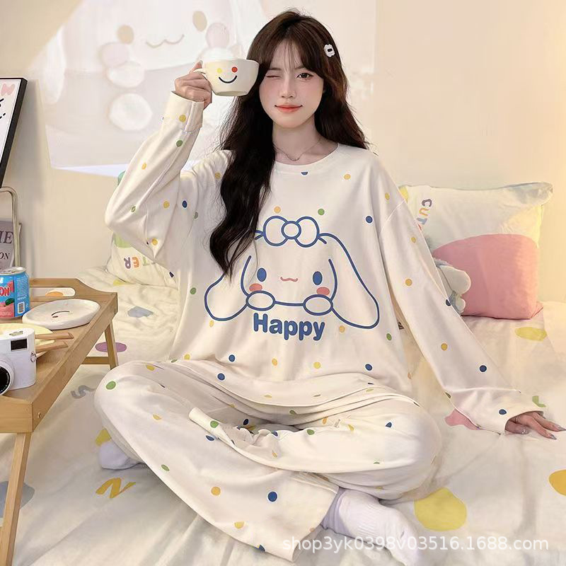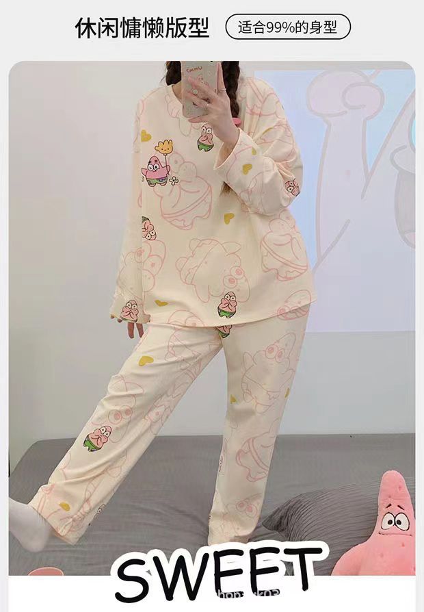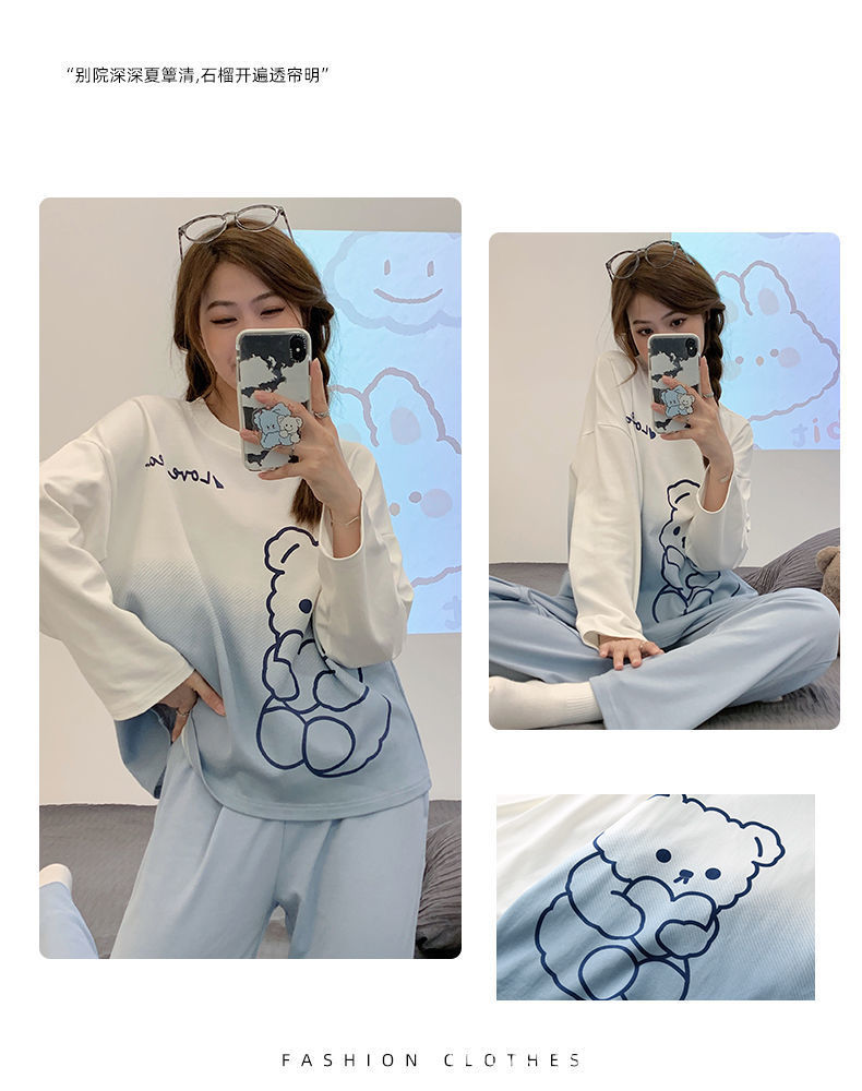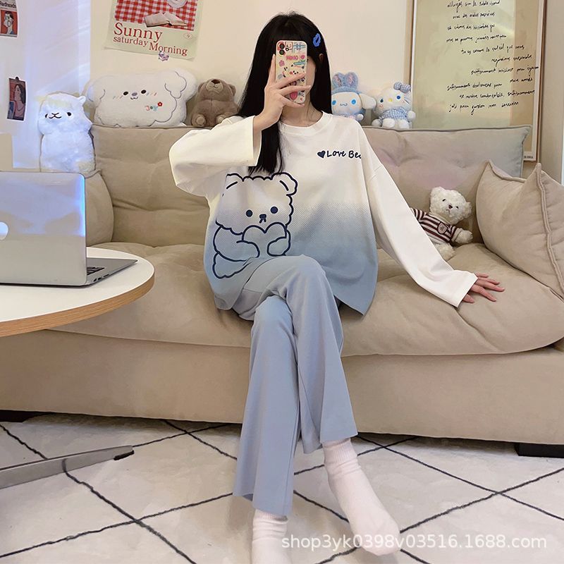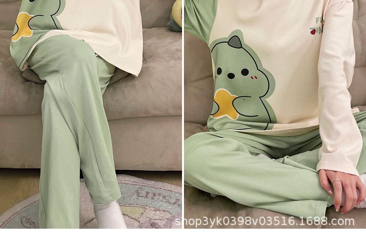 여성용 잠옷 봄, 가을 2025 새로운 긴팔 바지 한국 스타일 캐주얼 줄무늬 홈웨어 세트 도매 외부 착용 가능스토어 가기