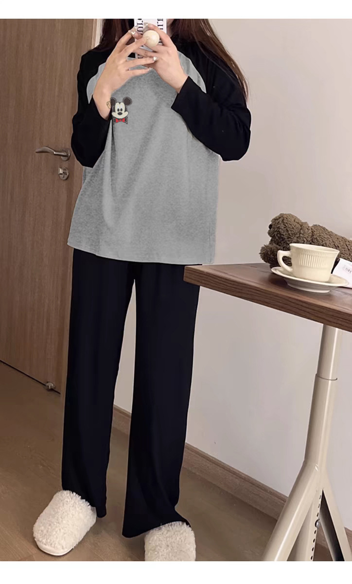 여성용 잠옷 봄, 가을 2025 새로운 긴팔 바지 한국 스타일 캐주얼 줄무늬 홈웨어 세트 도매 외부 착용 가능