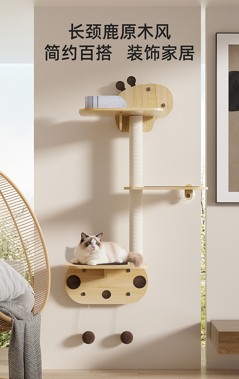 만화 기린 단단한 나무 고양이 클라이밍 프레임 벽걸이 형 고양이 점프 플랫폼 고양이 둥지 고양이 스크래치 보드 긁힘 방지 및 내마모성 애완 동물 장난감