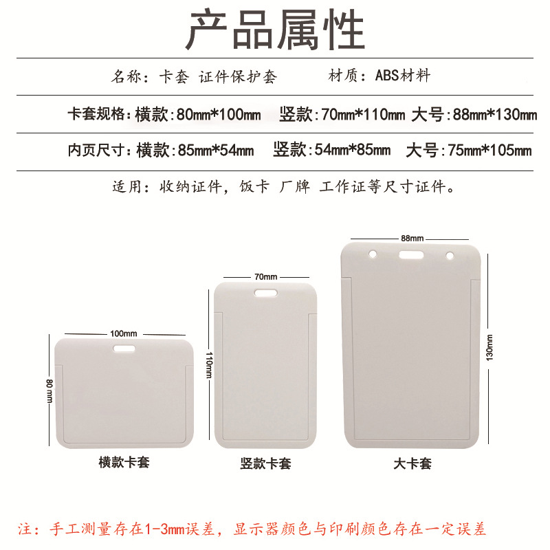빈 슬라이딩 커버 푸시 하드 카드 홀더 ABS 플라스틱 이름표 작업 인증서 직원 카드 만화 컬러 대형 카드 홀더