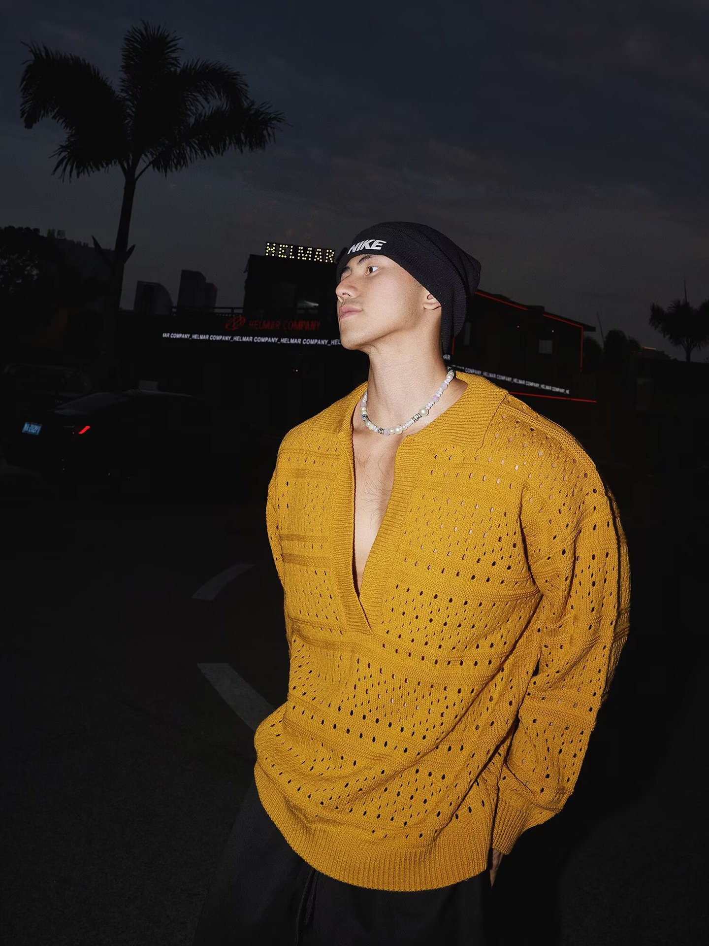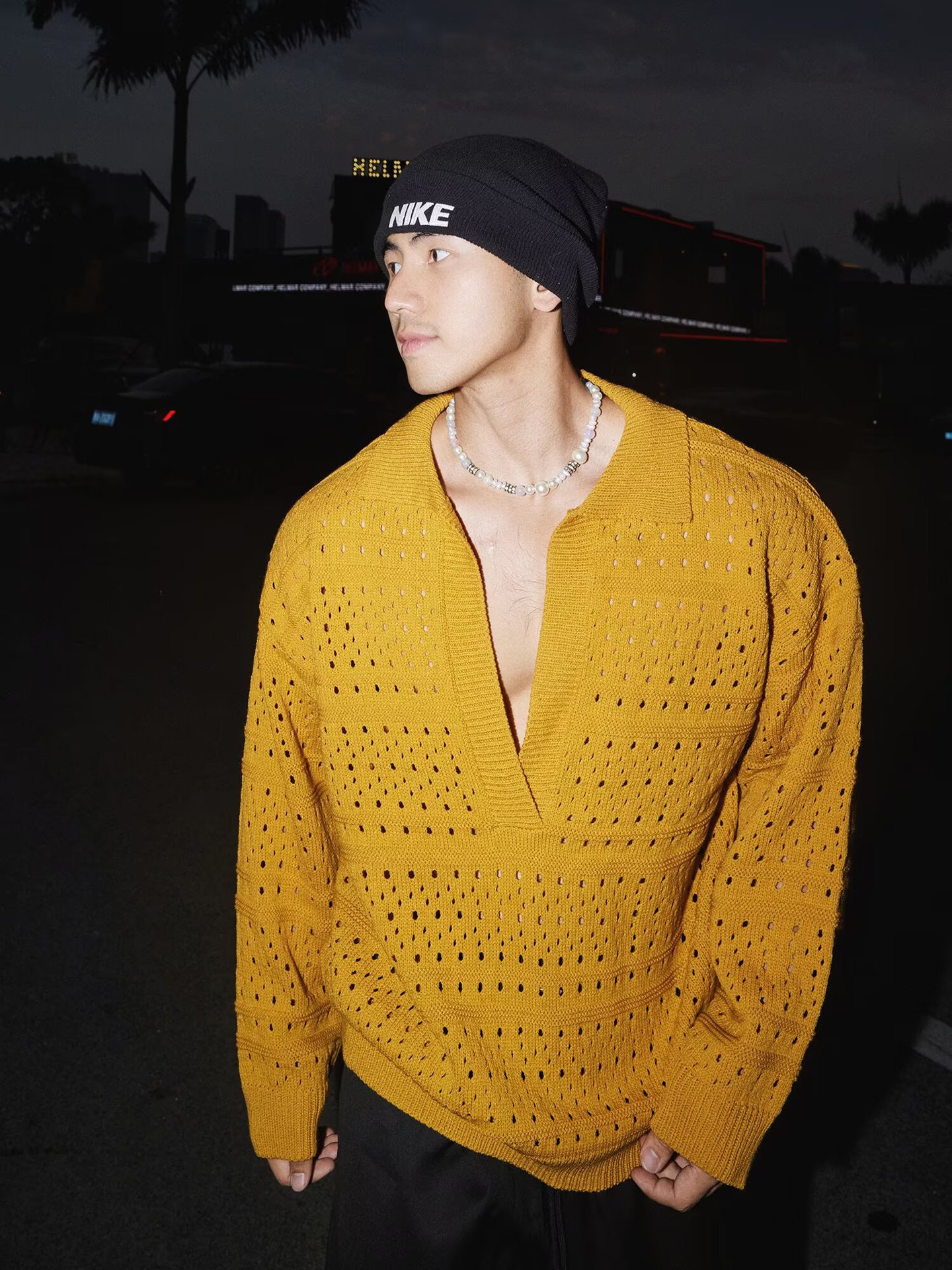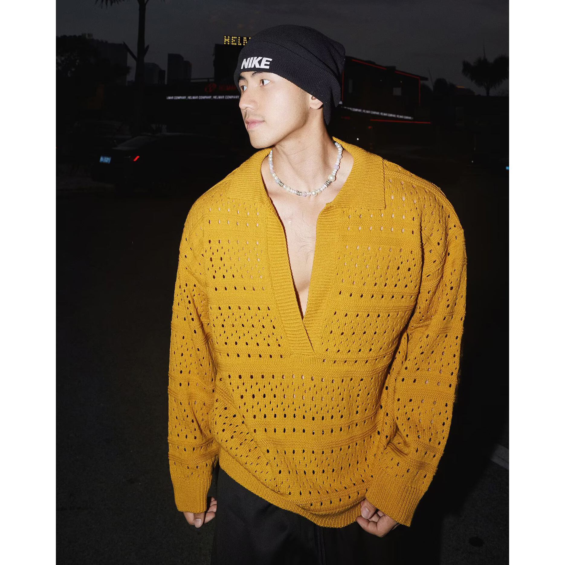 가을 겨울 새로운 스타일 중공 긴팔 스웨터 남성용 얇은 폴로 셔츠 라펠 깊은 V 넥 대외 무역 국경 간 도매