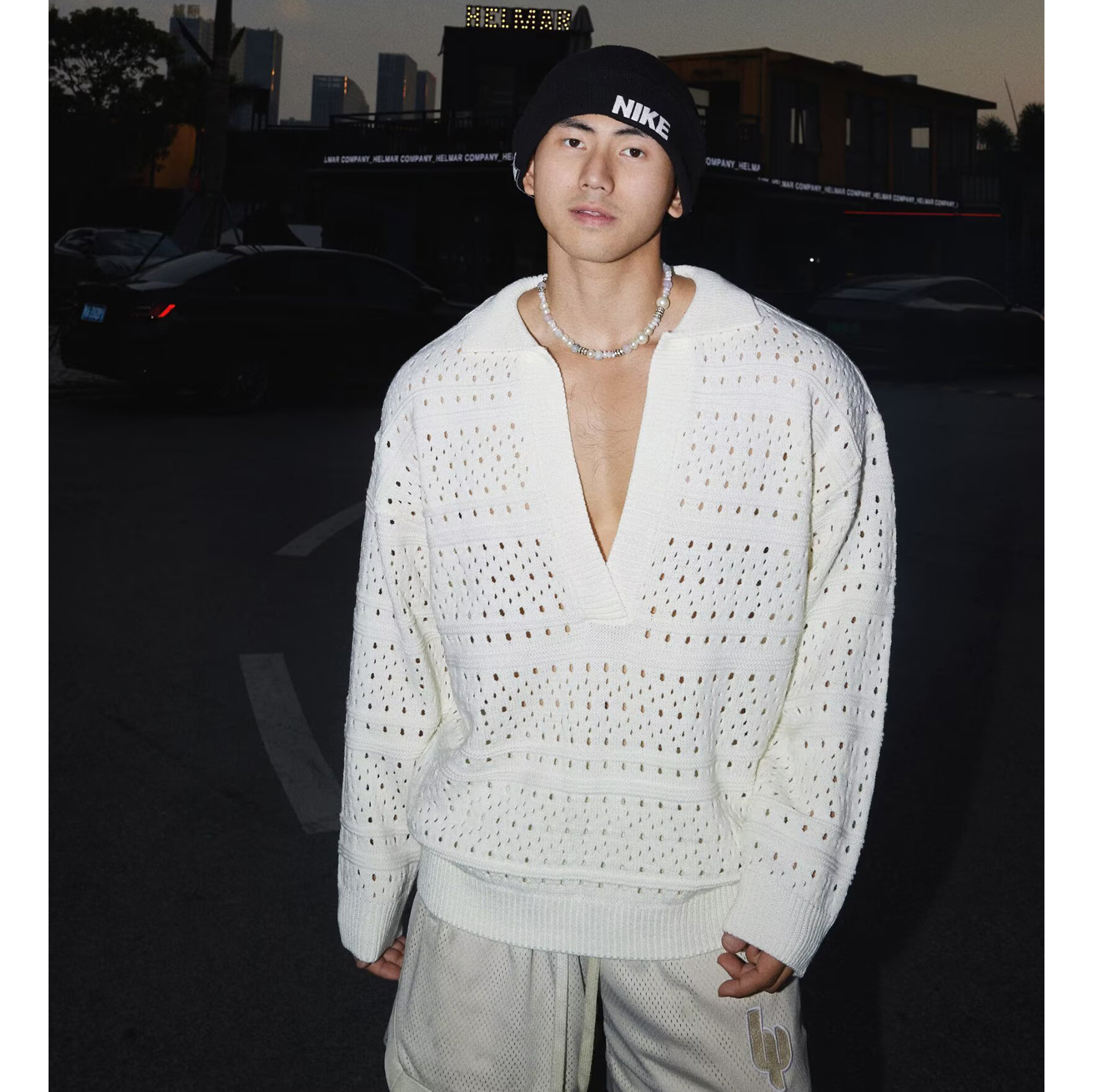 가을 겨울 새로운 스타일 중공 긴팔 스웨터 남성용 얇은 폴로 셔츠 라펠 깊은 V 넥 대외 무역 국경 간 도매스토어 가기