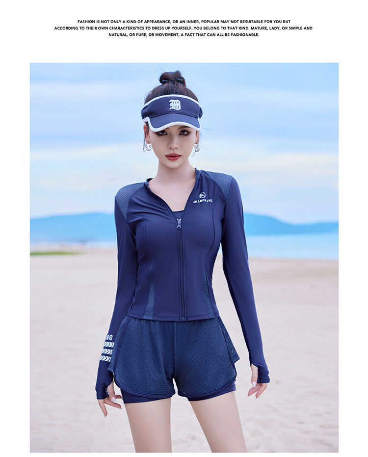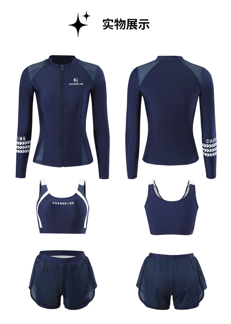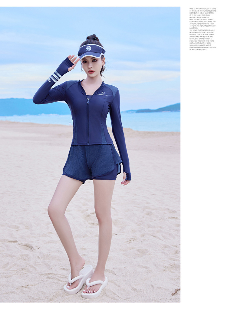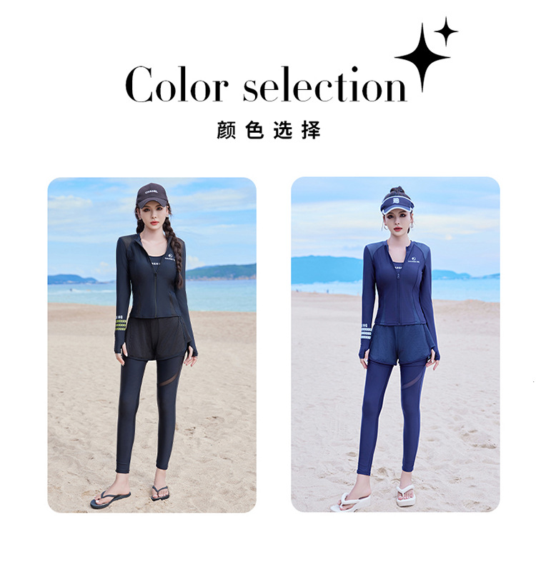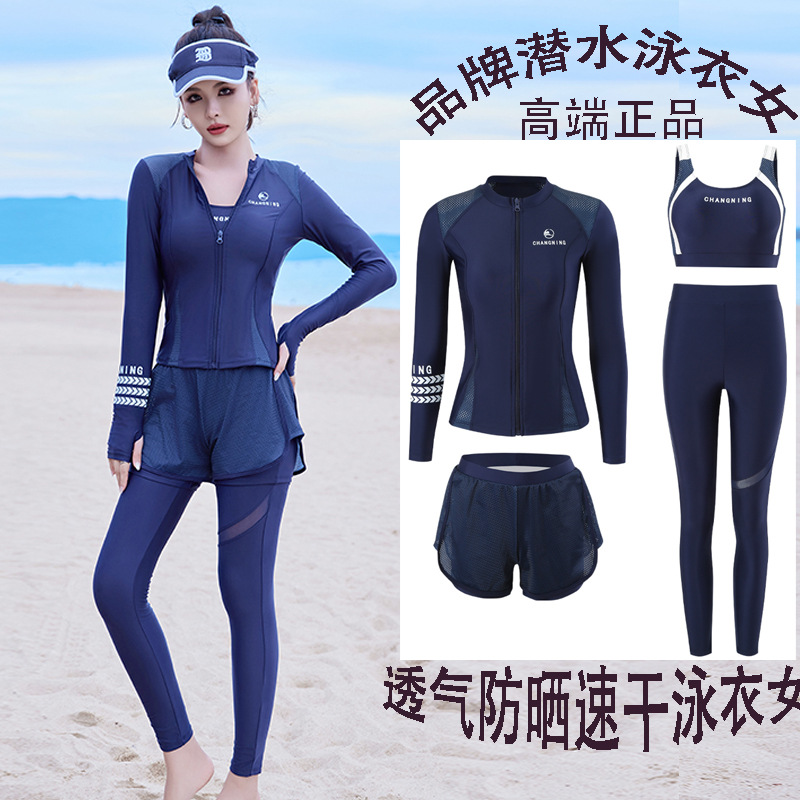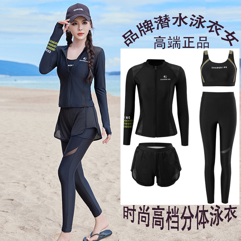 Changning 하이 엔드 패션 수영복 여성 스플릿 긴팔 바지 태양 보호 수영복 여성을위한 보수적 인 슬리밍 서핑 잠수복