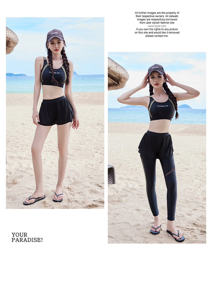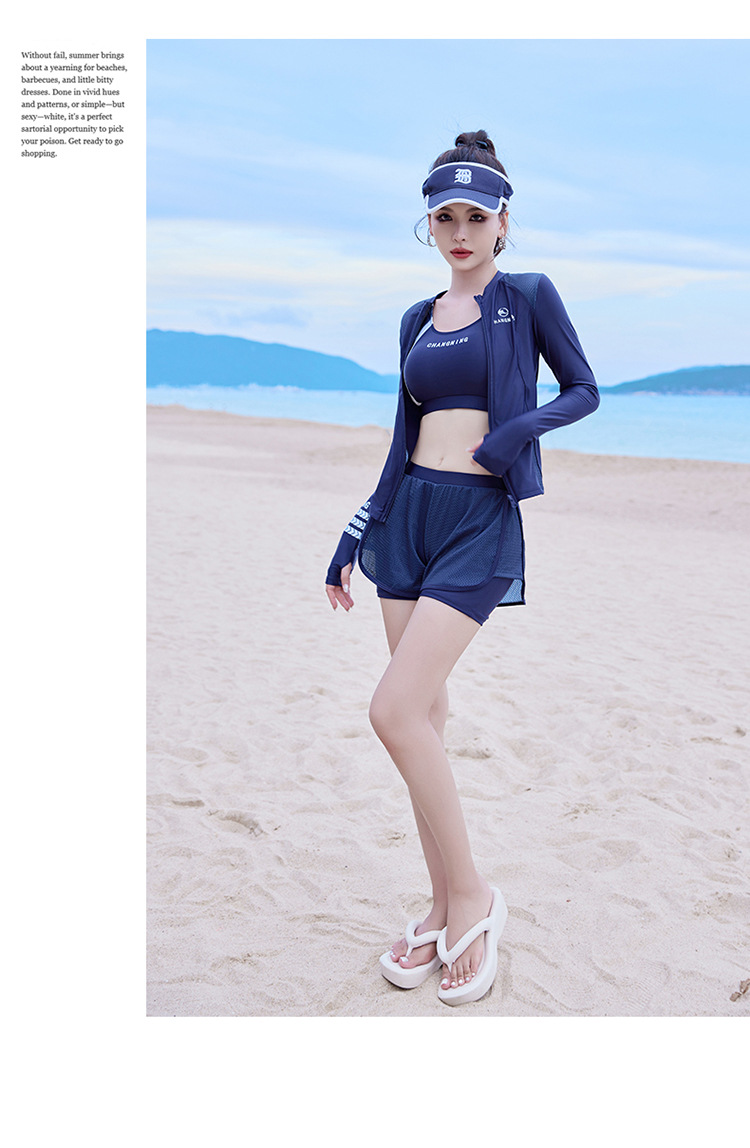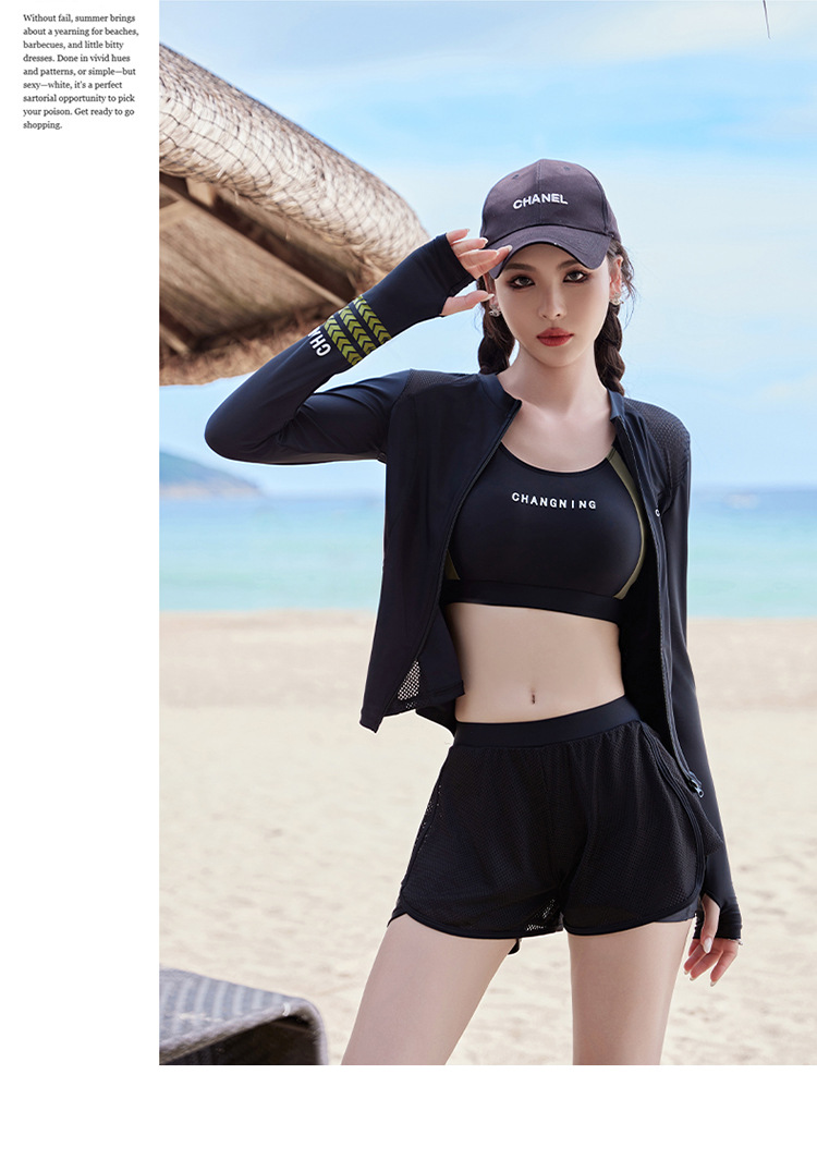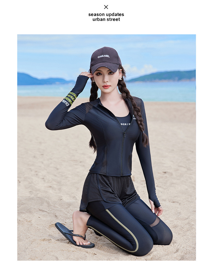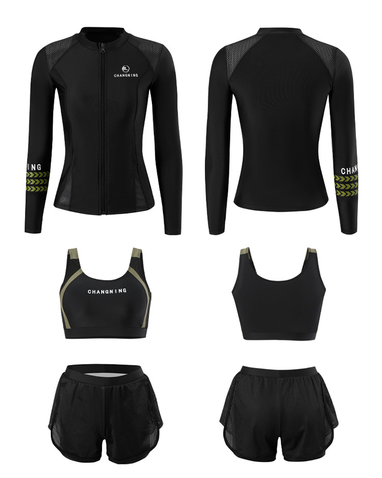 Changning 하이 엔드 패션 수영복 여성 스플릿 긴팔 바지 태양 보호 수영복 여성을위한 보수적 인 슬리밍 서핑 잠수복